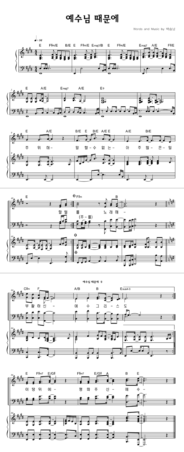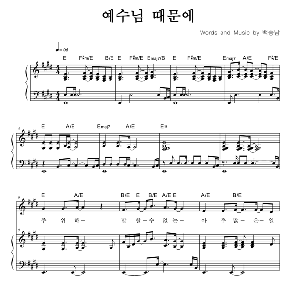 | 예수님 때문에 | 성가 4부 + 피아노 반주 |