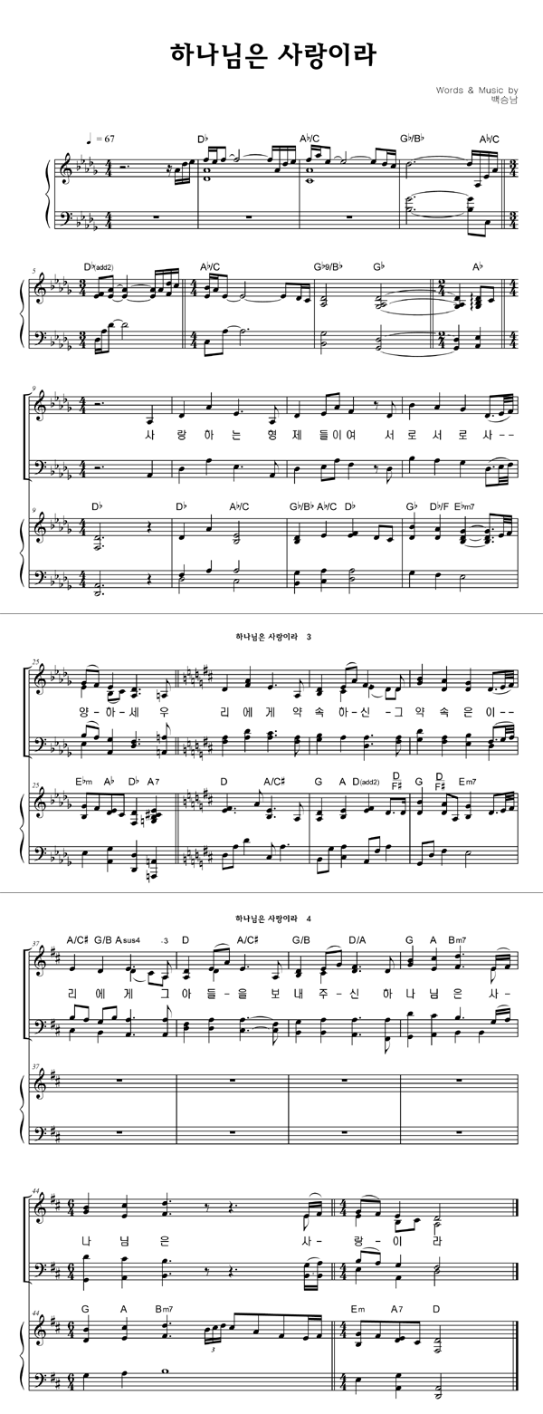 | 하나님은 사랑이라 | 성가 4부 + 피아노 반주 |