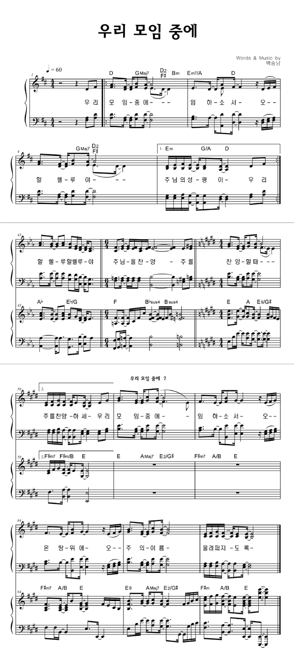 '우리 모임중에' 의 다른 악보형식