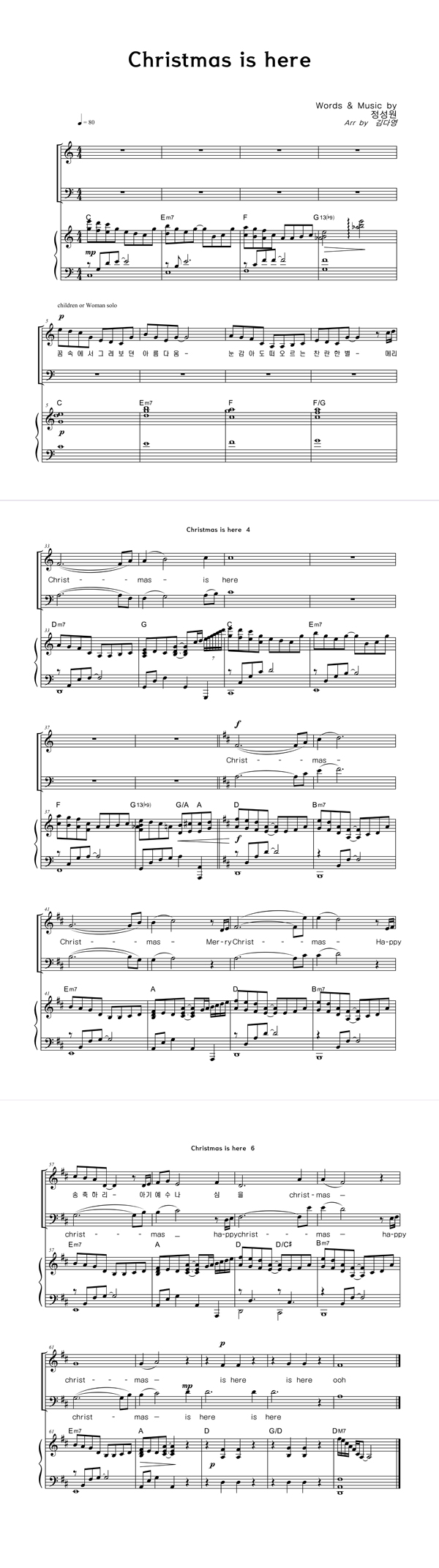 | Christmas is Here | 성가 3부 + 피아노 반주 |