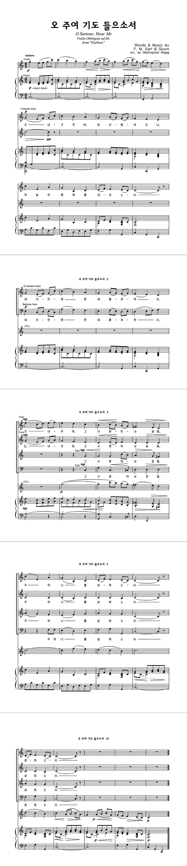 '오 주여 기도 들으소서' 의 다른 악보형식