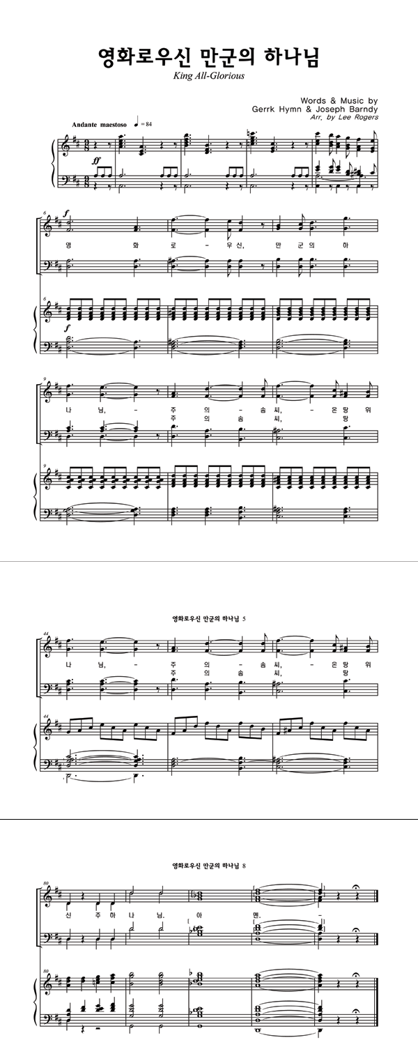 '영화로우신 만군의 하나님' 의 다른 악보형식