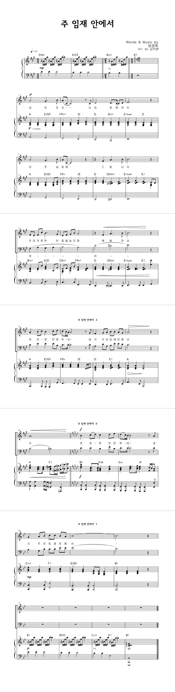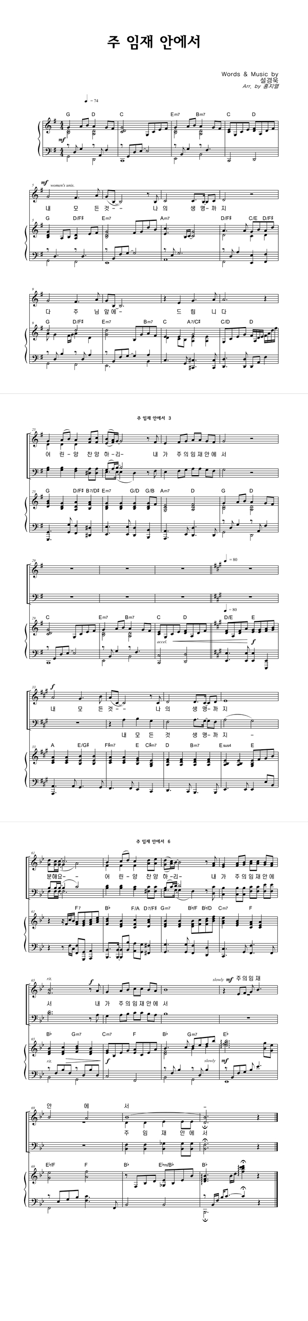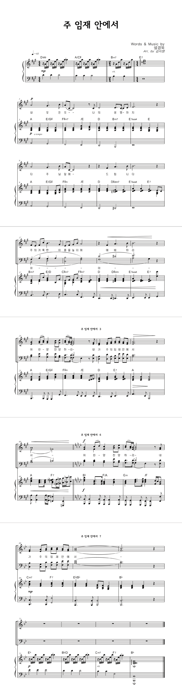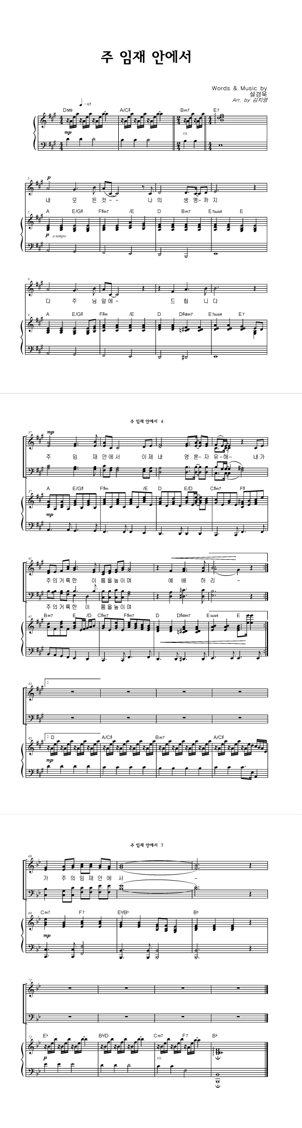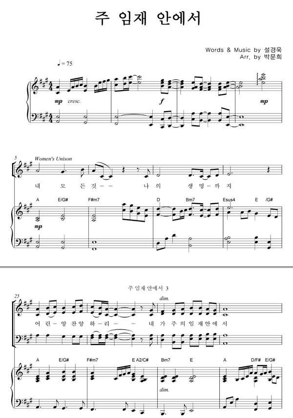 | 주 임재 안에서 | 성가 4부 + 피아노 반주 |