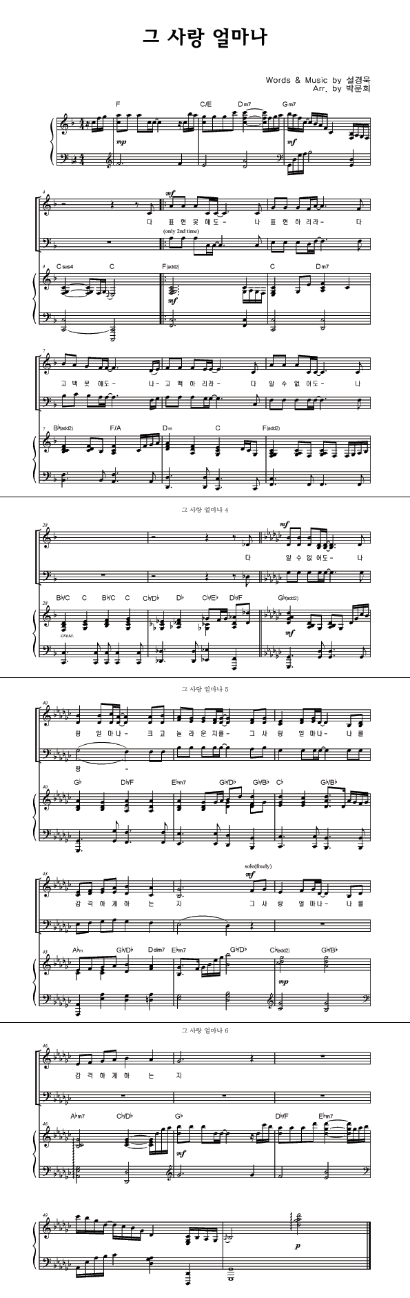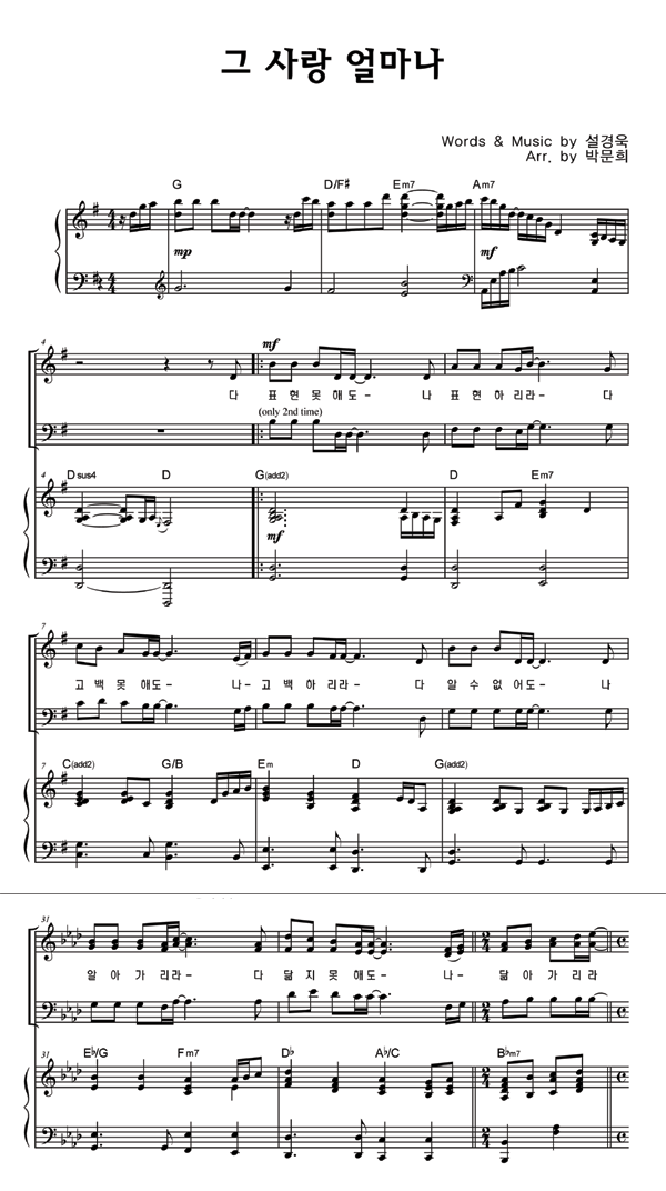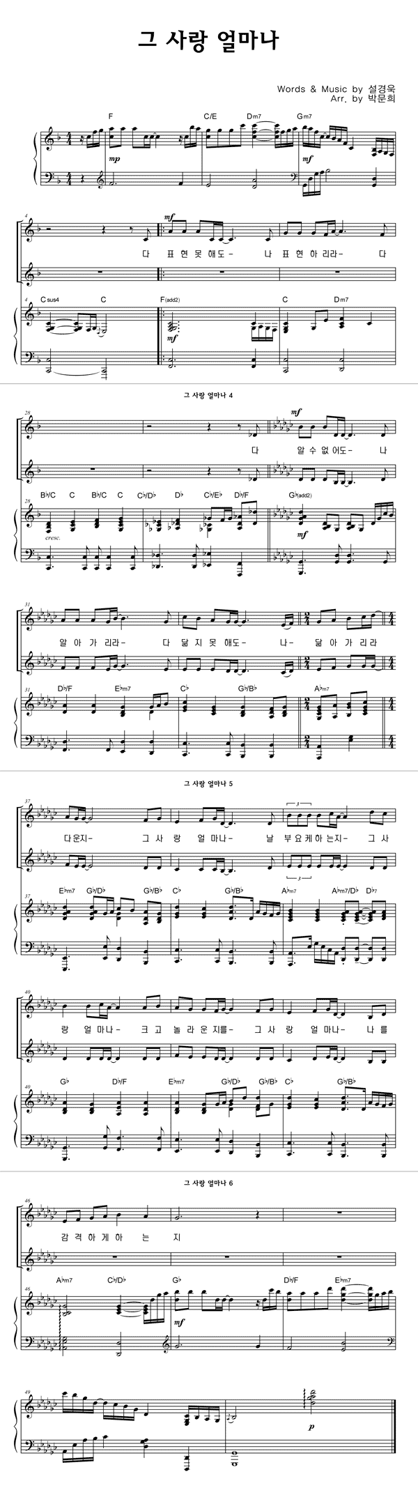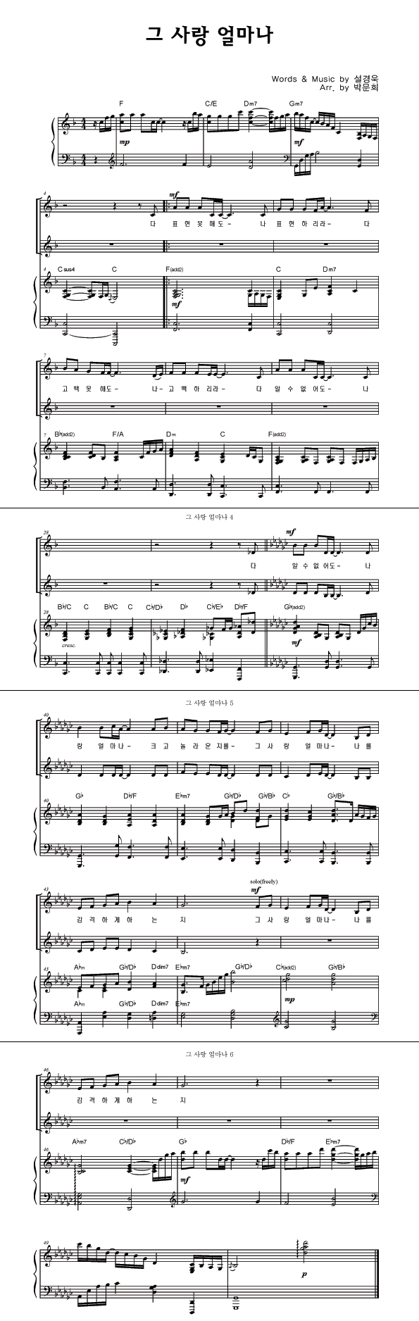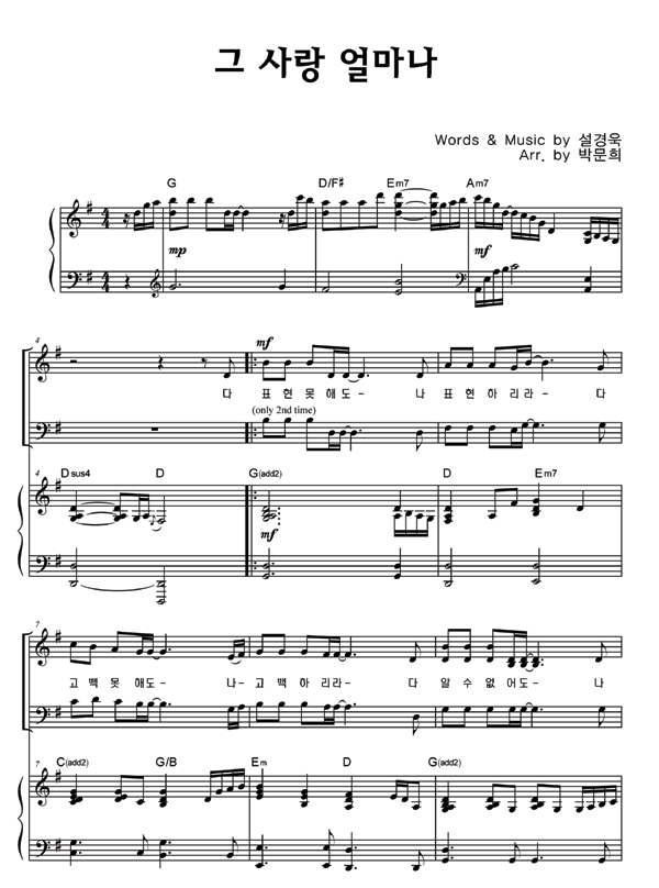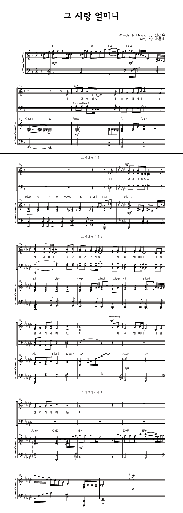 | 그 사랑 얼마나 | 성가 2부 + 피아노 반주 |