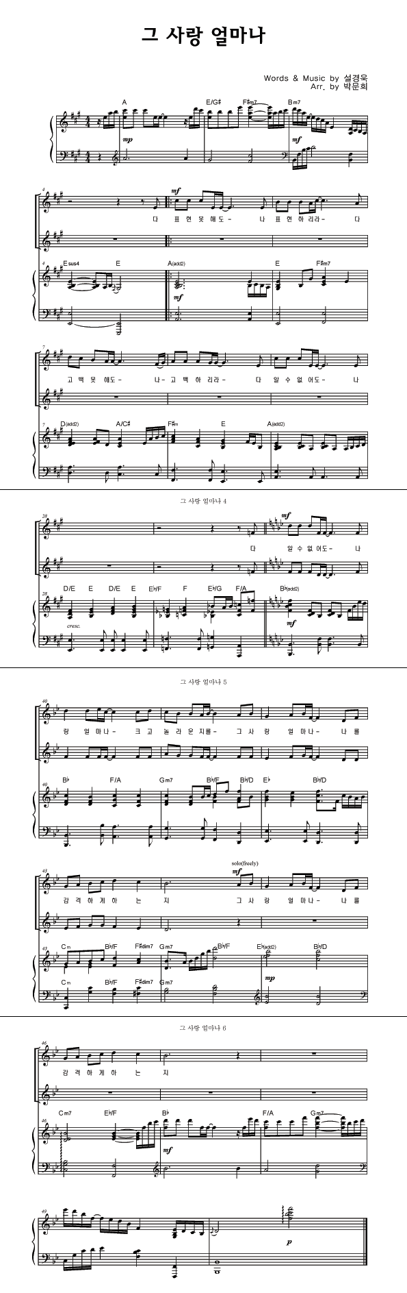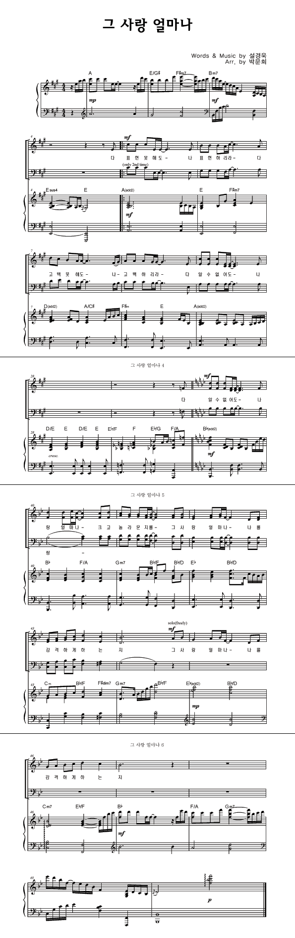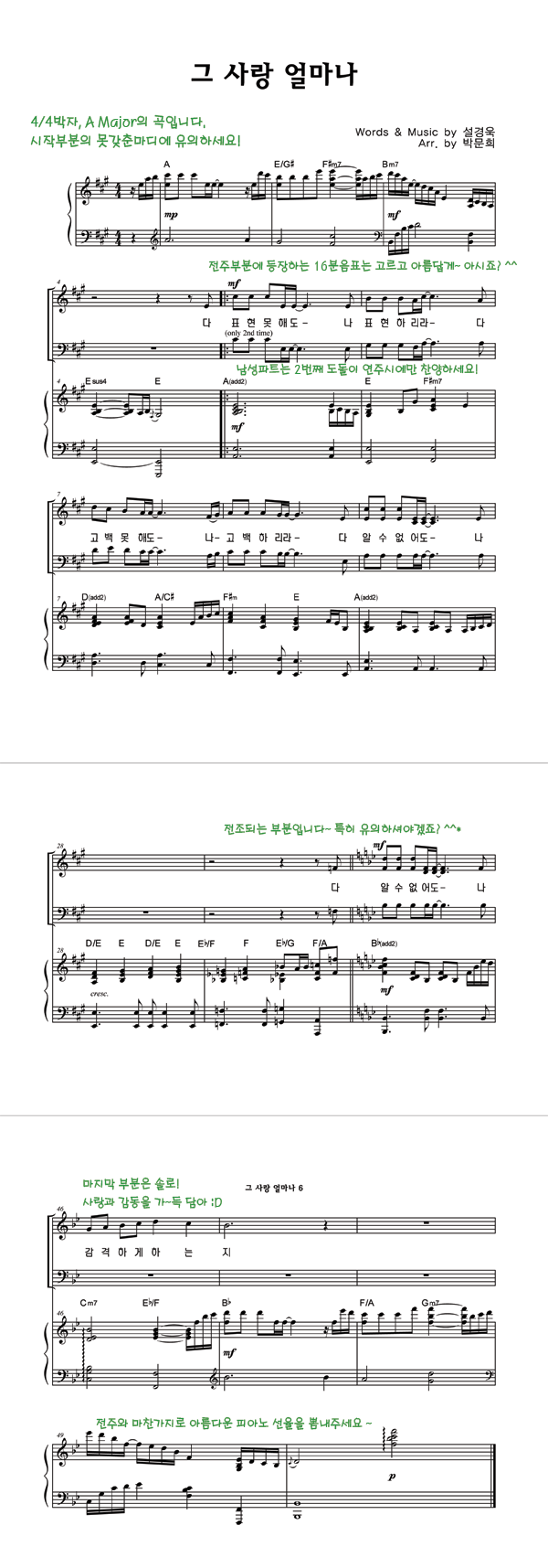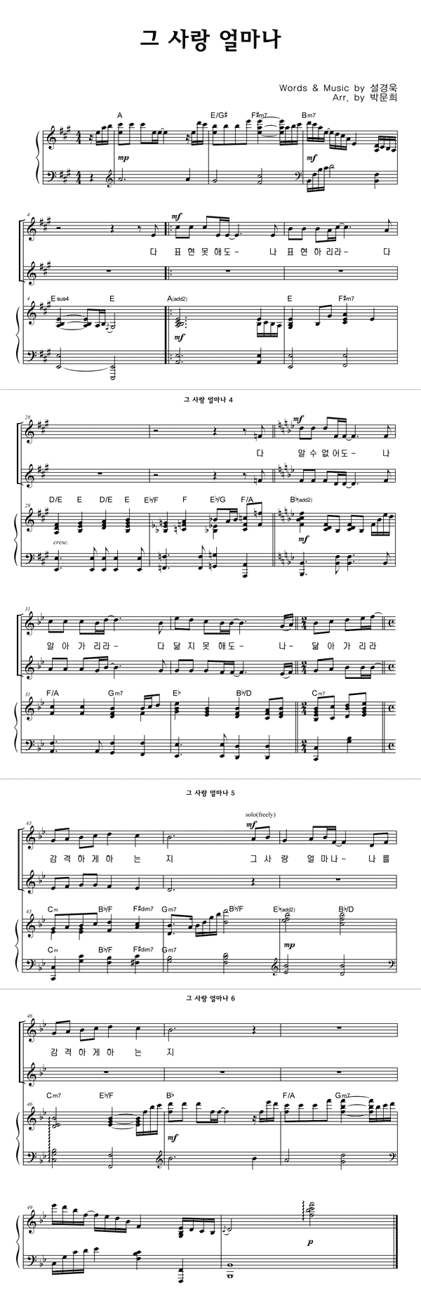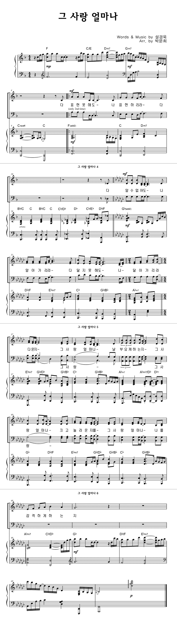 | 그 사랑 얼마나 | 성가 2부 + 피아노 반주 |
