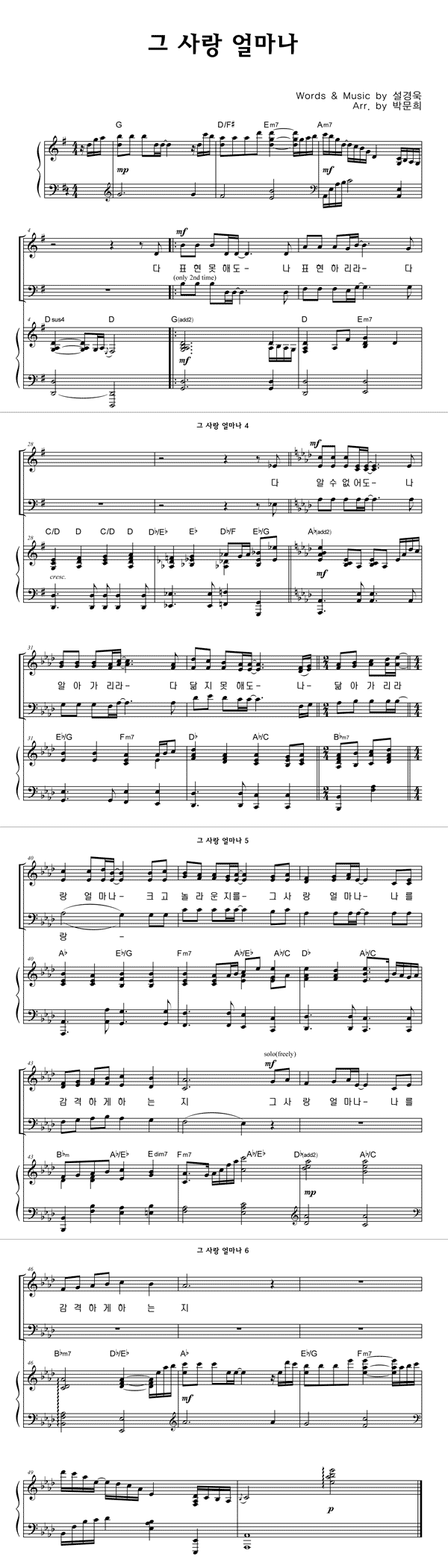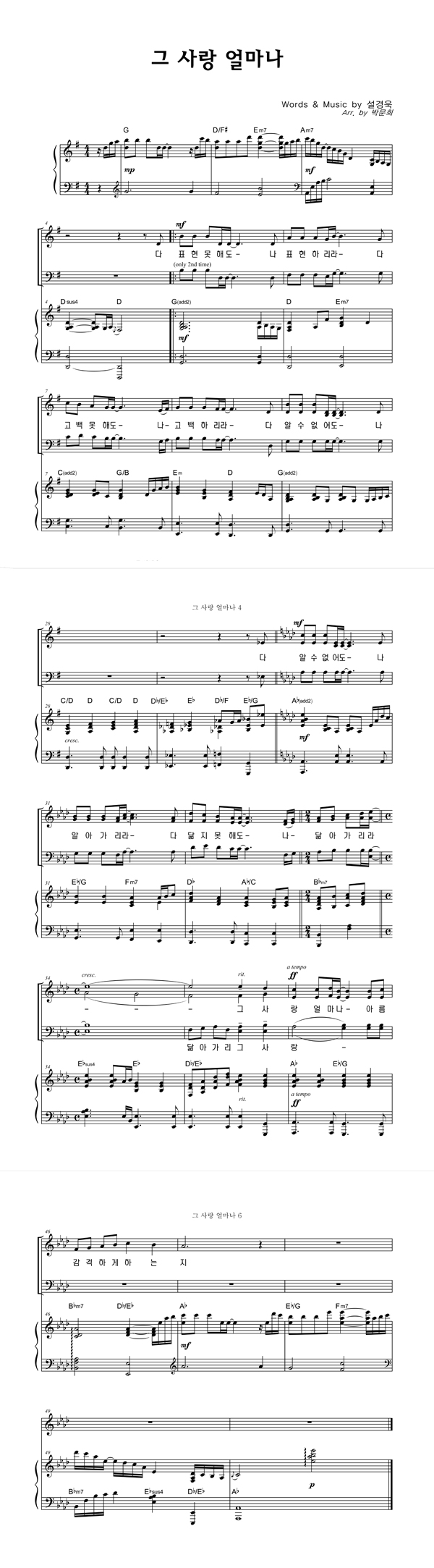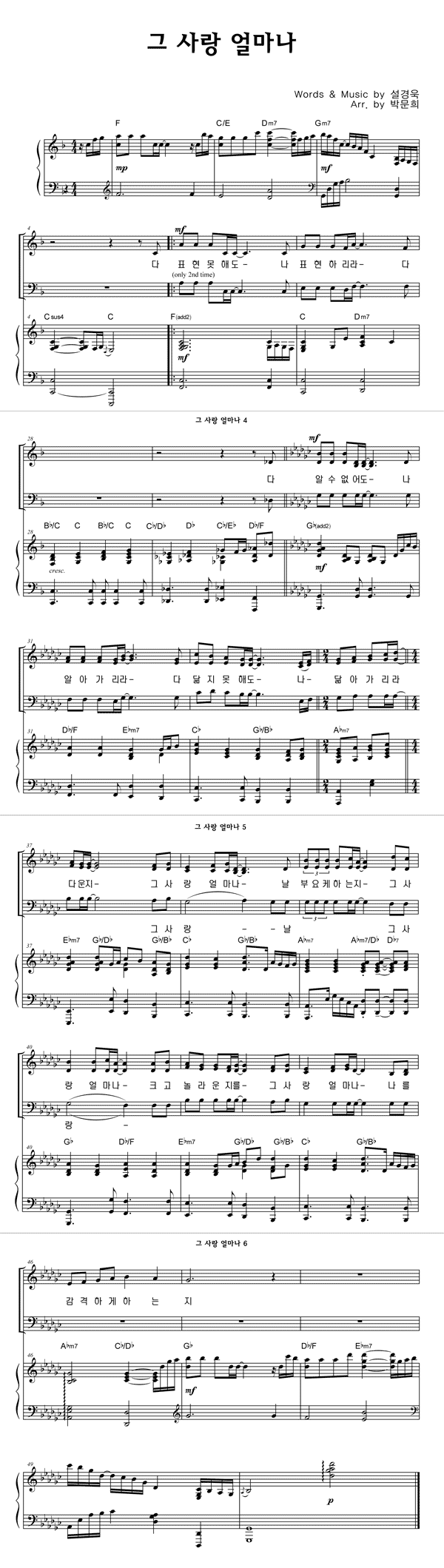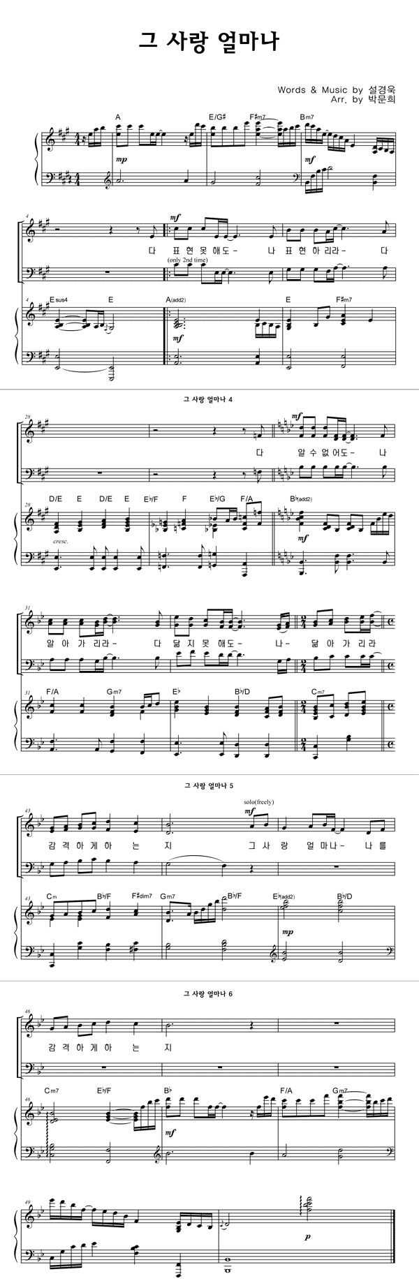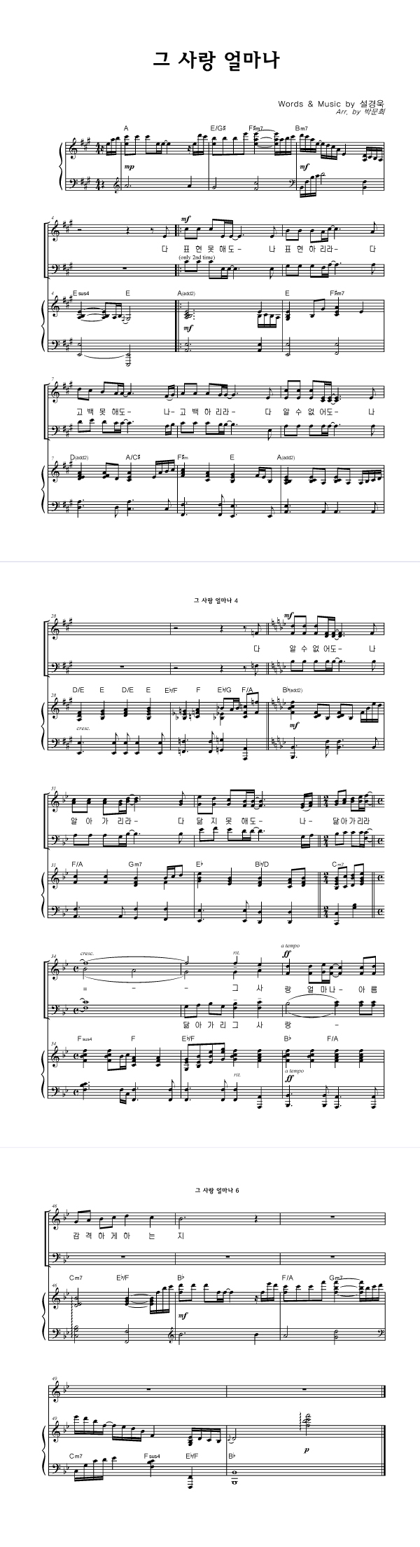 | 그 사랑 얼마나 | 성가 2부 + 피아노 반주 |