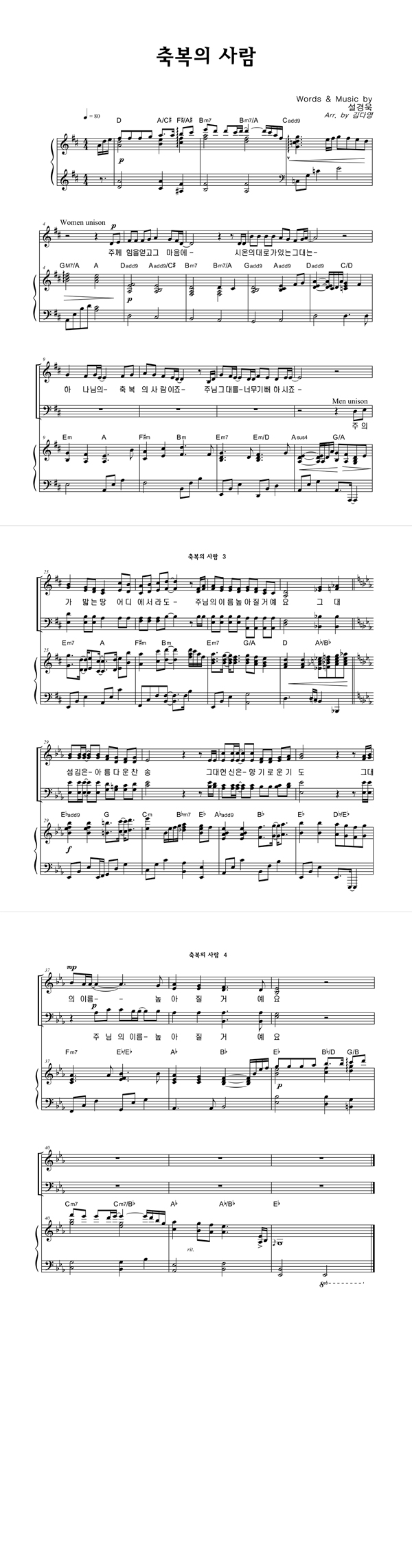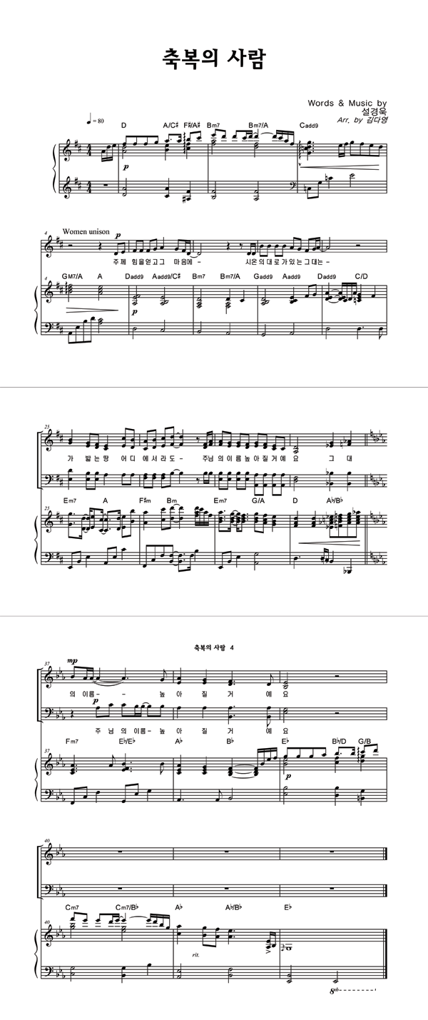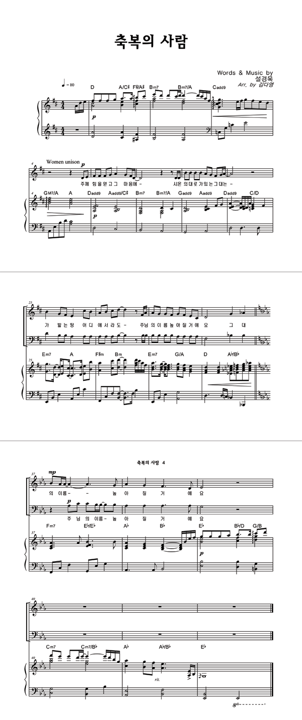 | 축복의 사람 | 성가 3부 + 피아노 반주 |