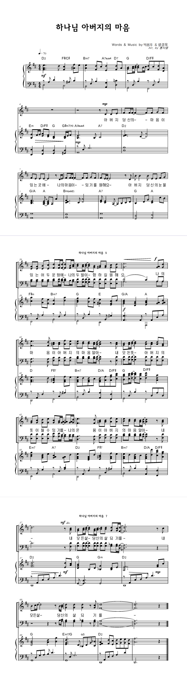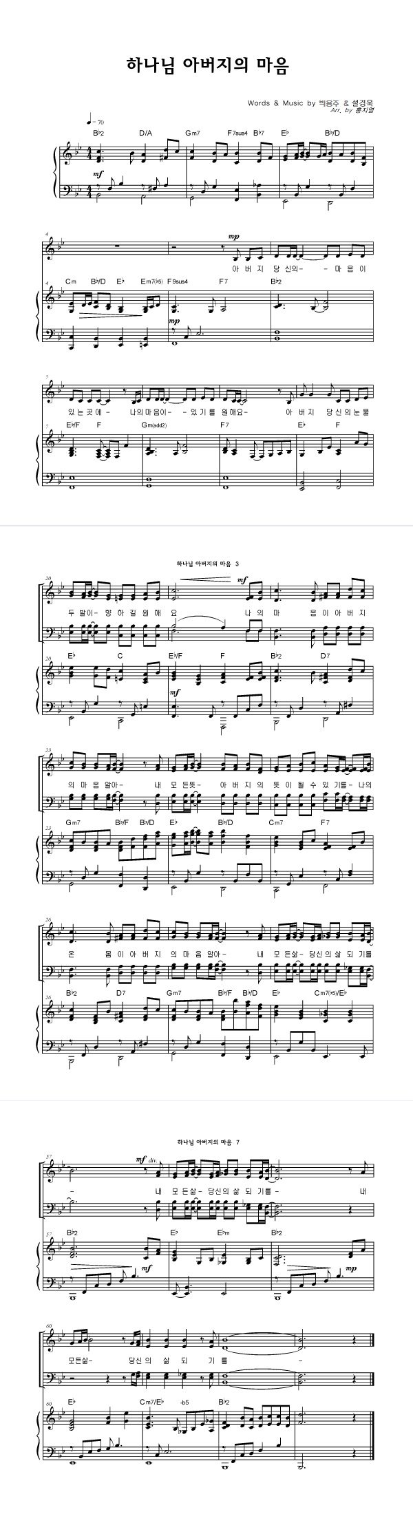 | 하나님 아버지의 마음 | 성가 3부 + 피아노 반주 |