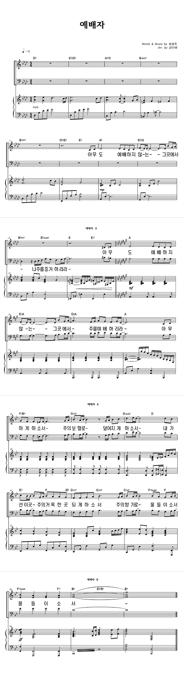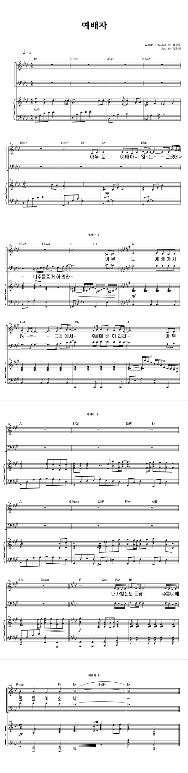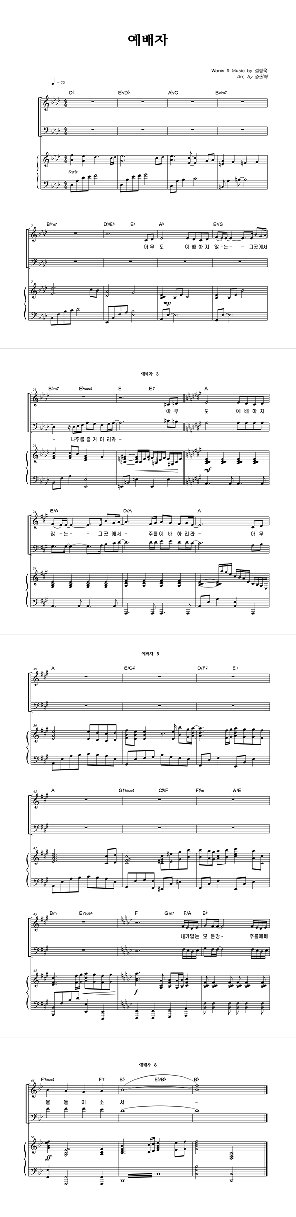 | 예배자 큰글씨 | 성가 3부 + 피아노 반주 |