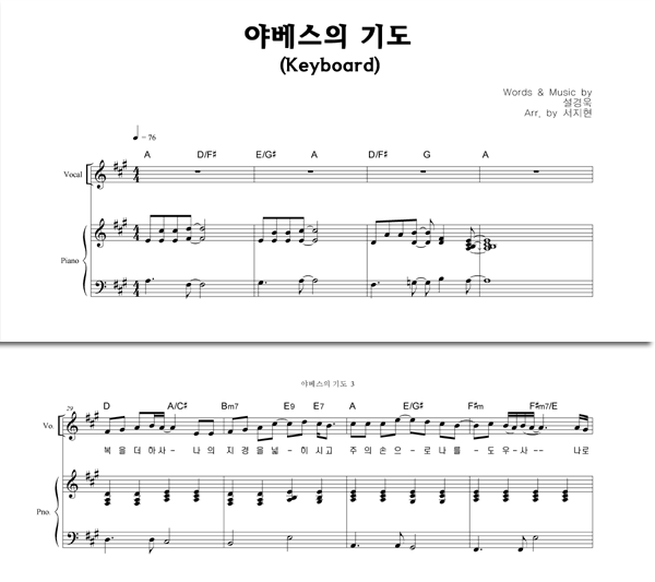 '야베스의 기도' 의 다른 악보형식
