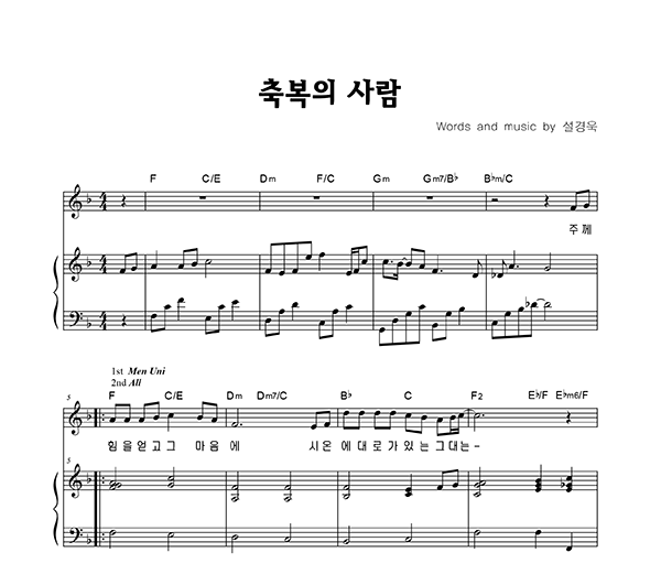 | 축복의 사람 | 성가 2부 + 피아노 반주 |