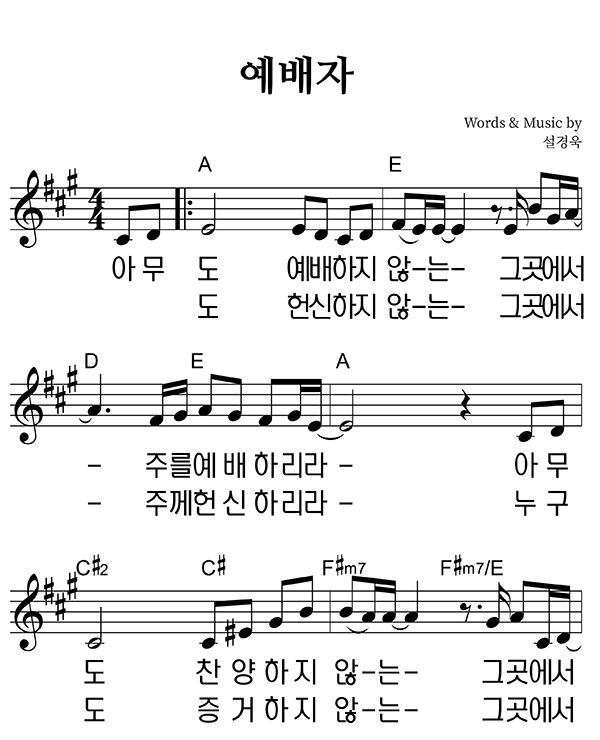 | 예배자 | 성가 4부 + 피아노 반주 |