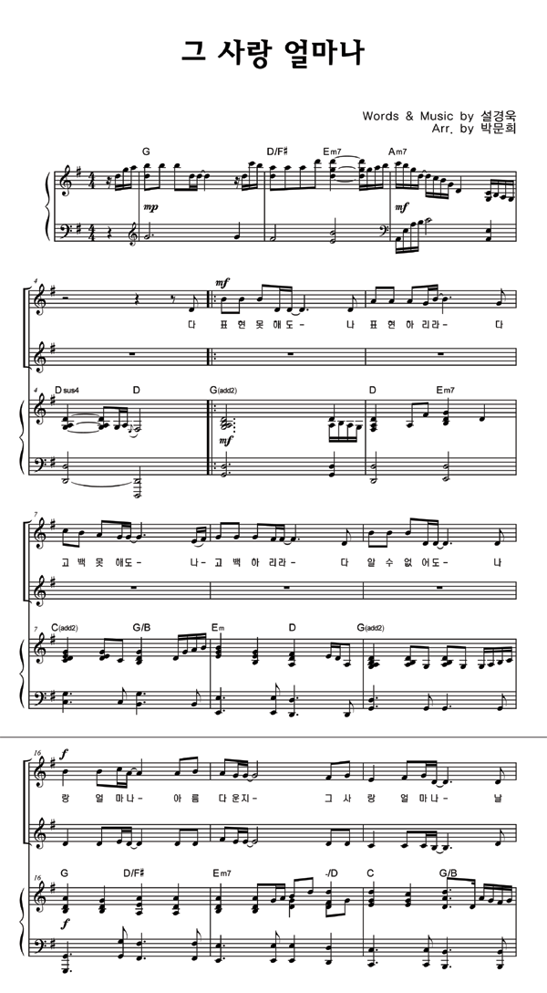 | 그 사랑 얼마나 | 성가 3부 + 피아노 반주 |