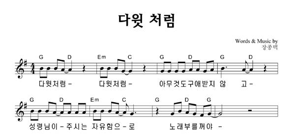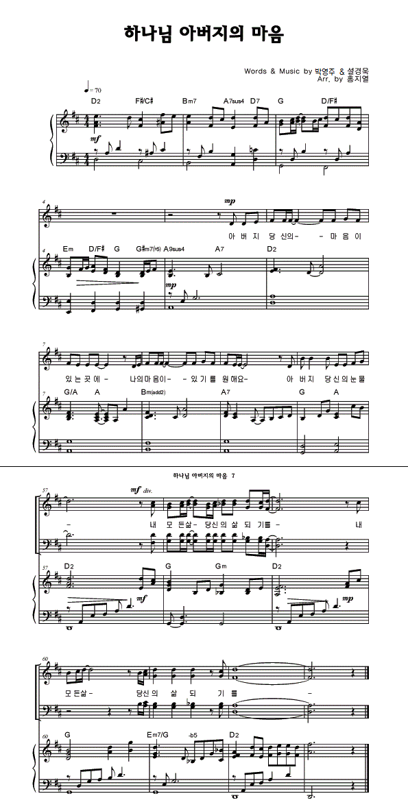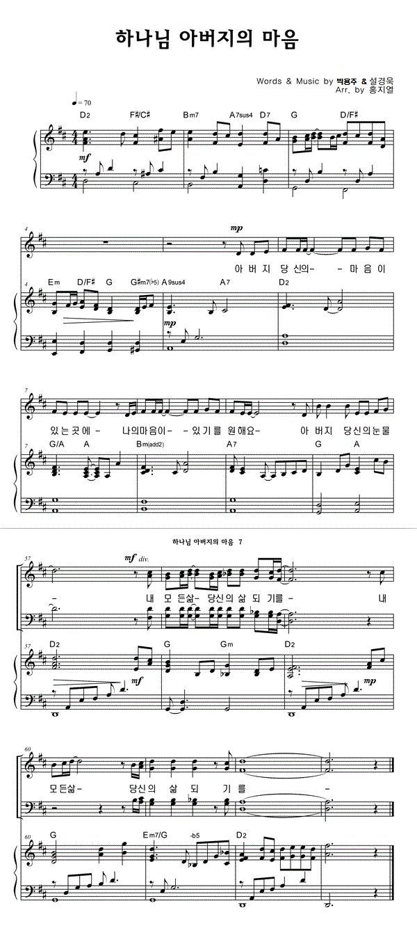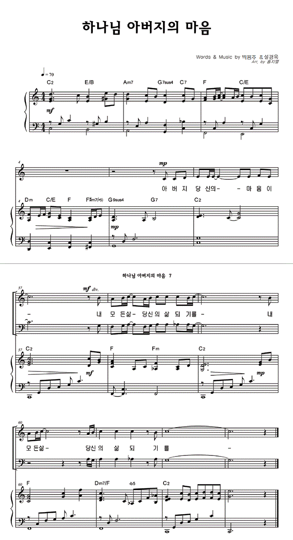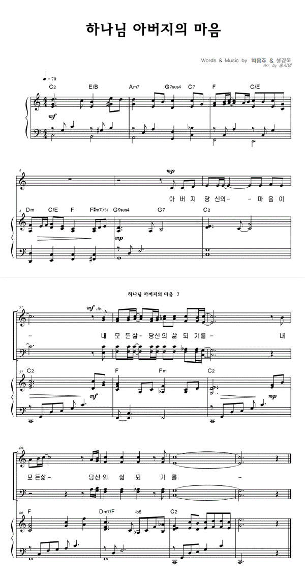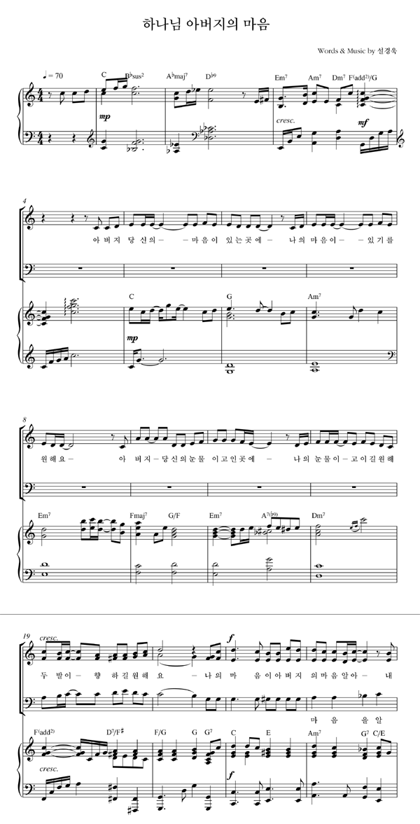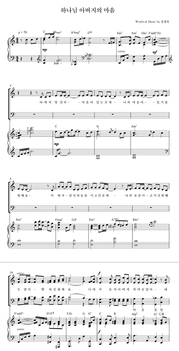 | 하나님 아버지의 마음 | 성가 2부 + 피아노 반주 |