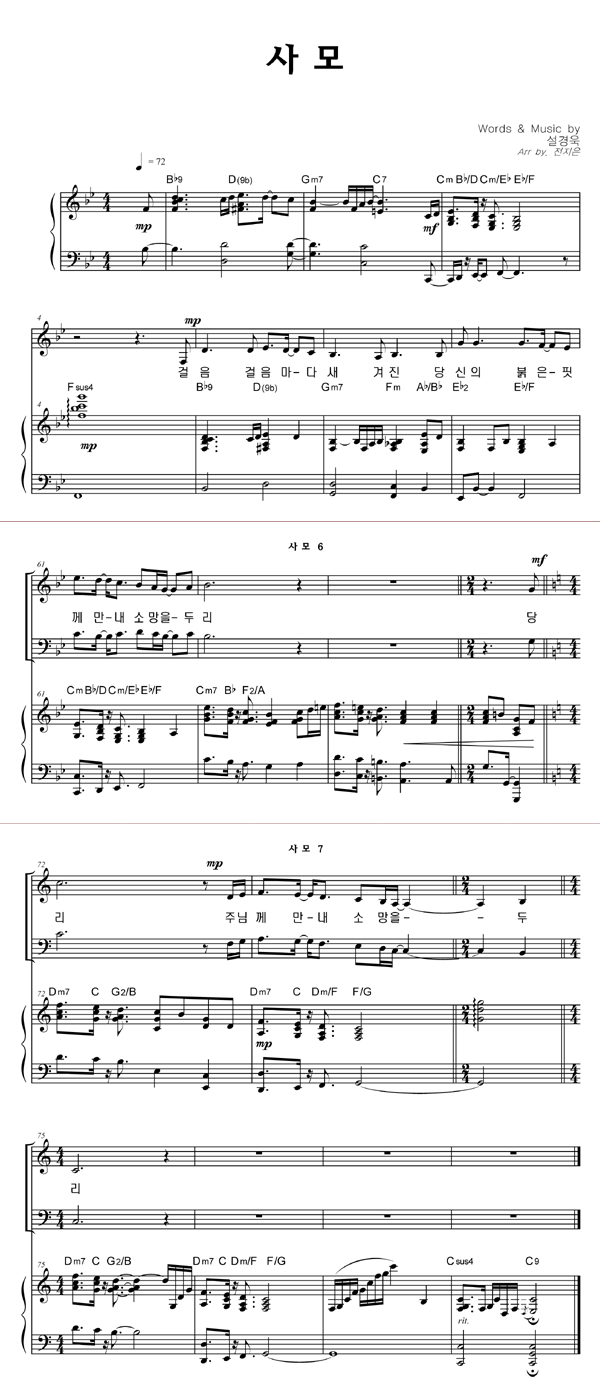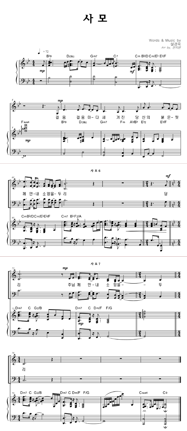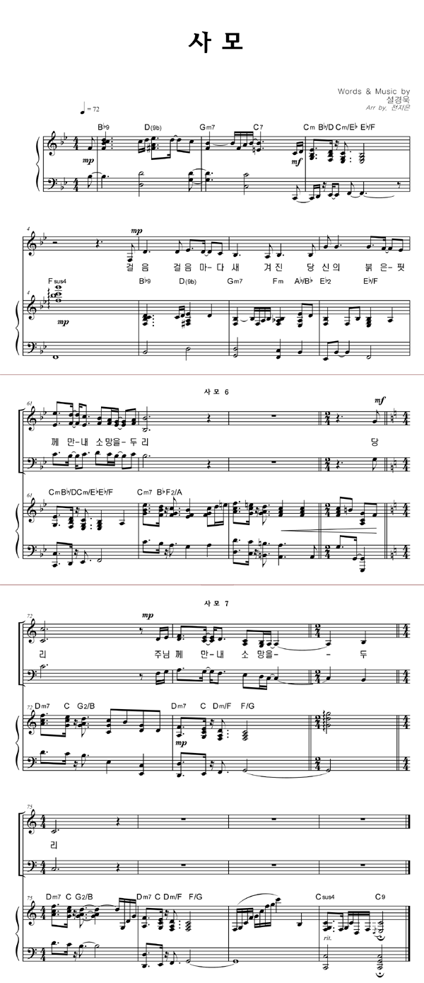 | 사모 | 성가 3부 + 피아노 반주 |