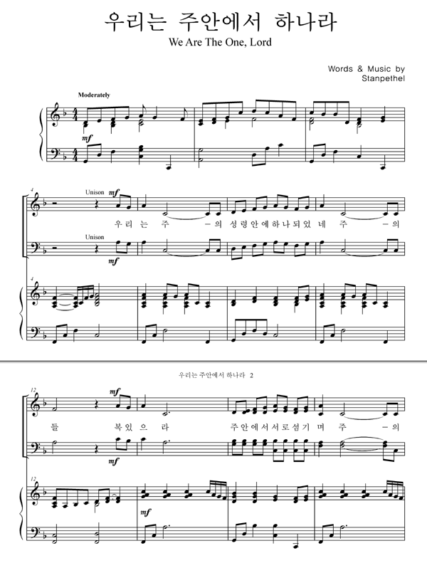 '우리는 주안에서 하나라' 의 다른 악보형식