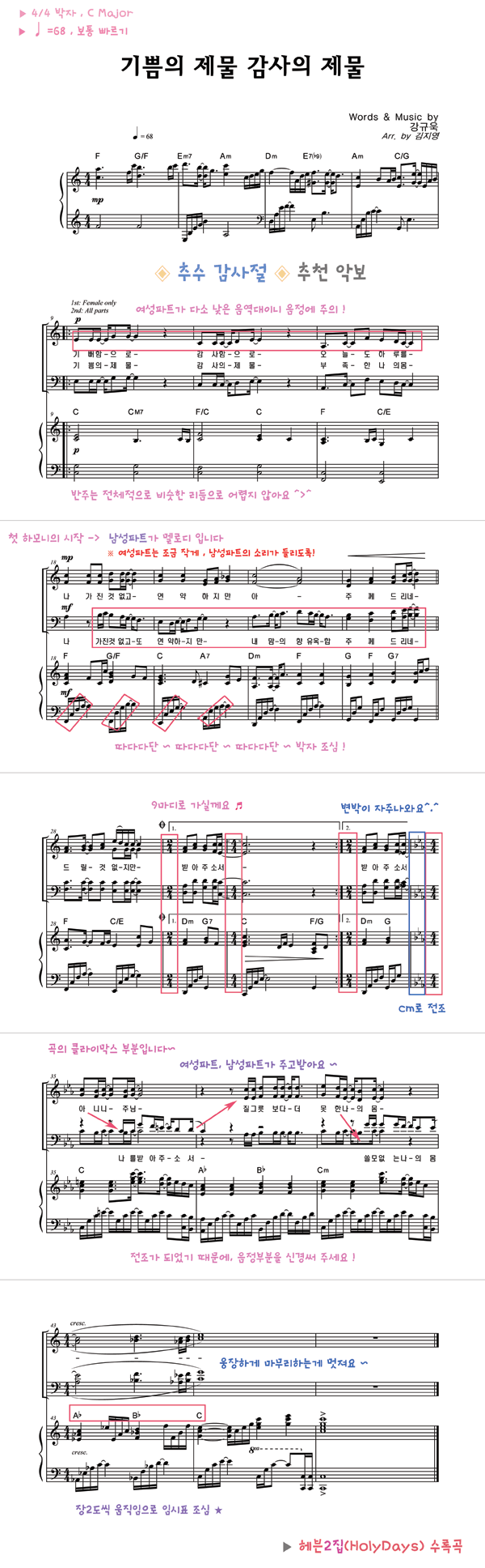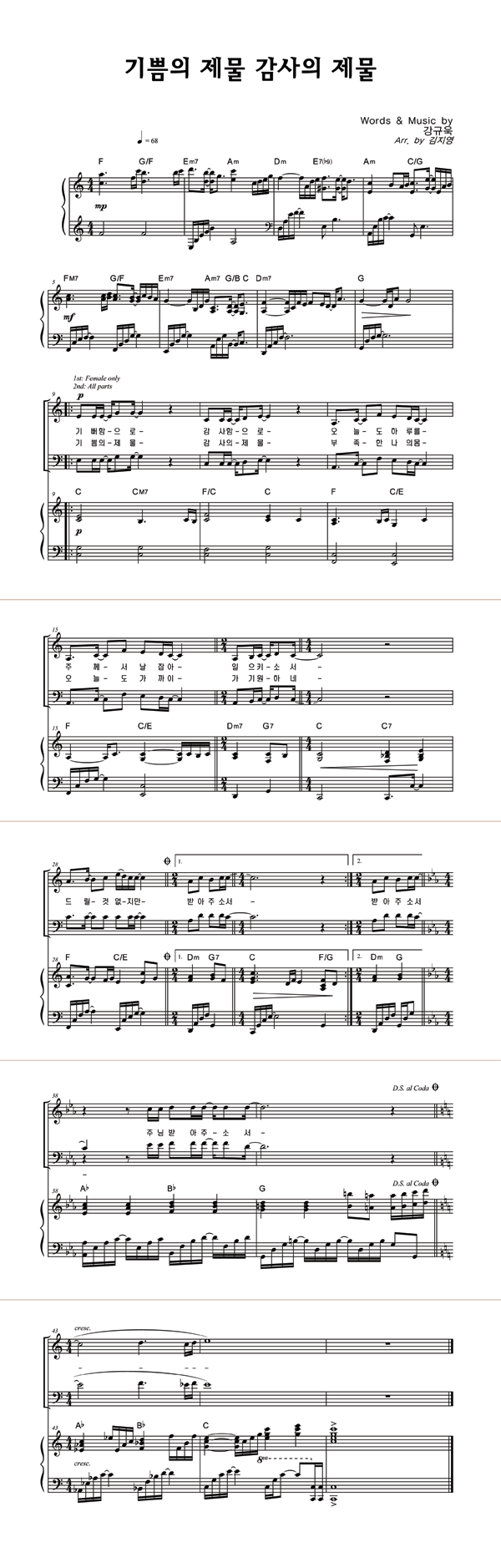 | 기쁨의 제물 감사의 제물 | 성가 2부 + 피아노 반주 |