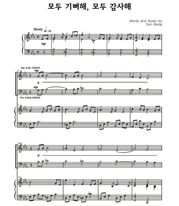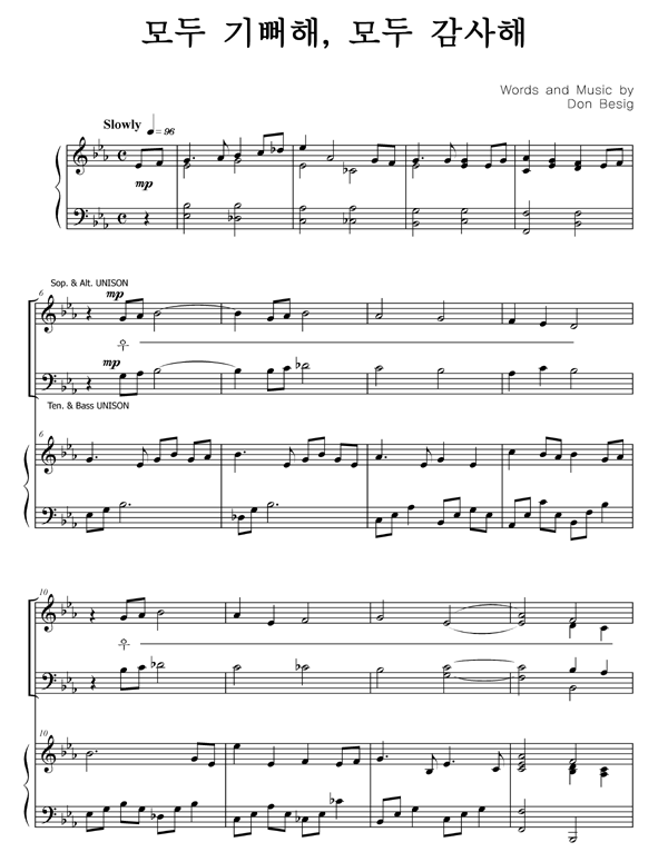 '모두 기뻐해, 모두 감사해' 의 다른 악보형식