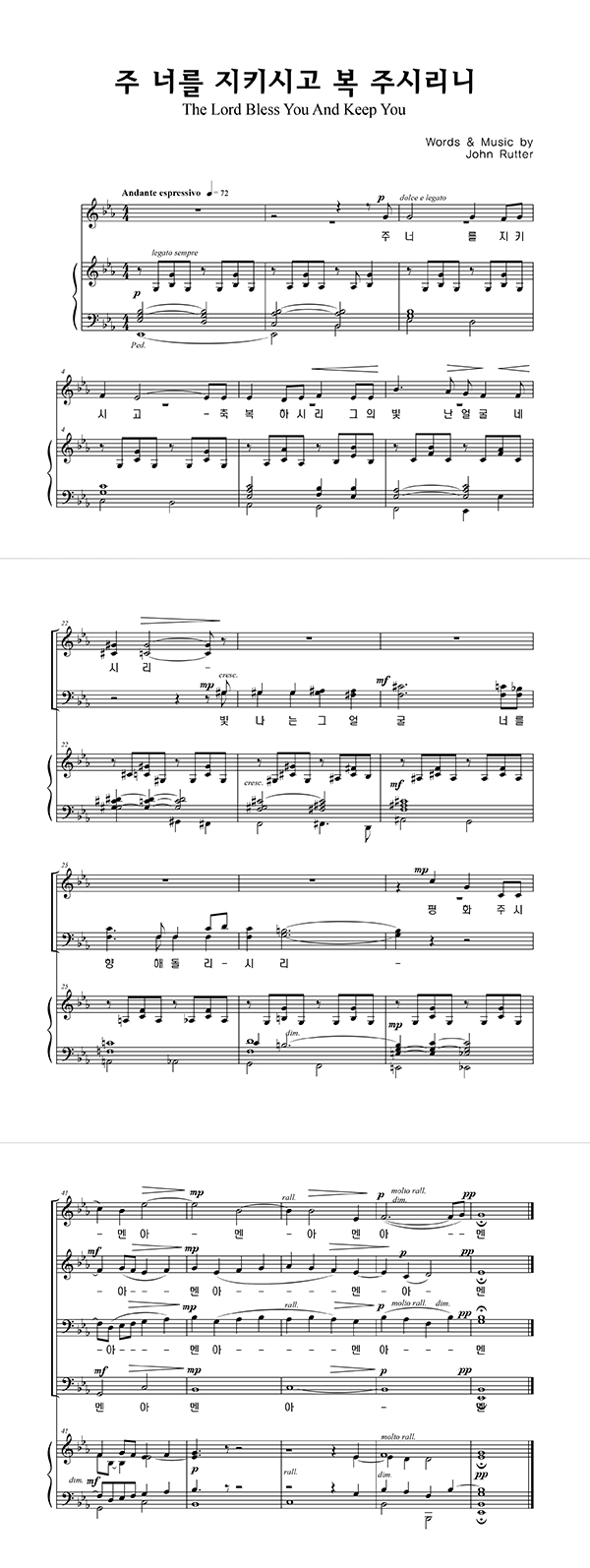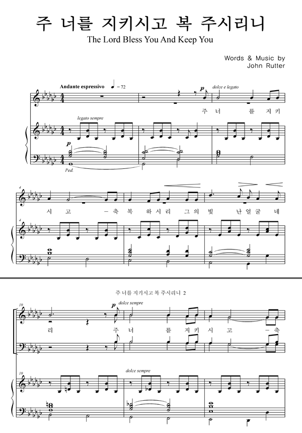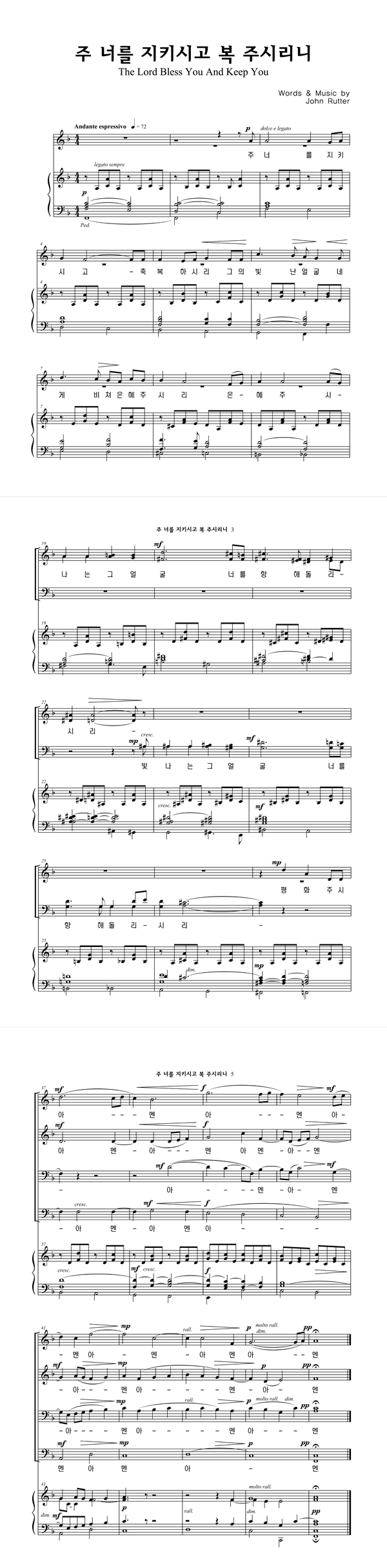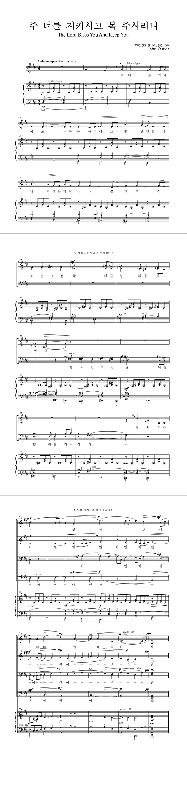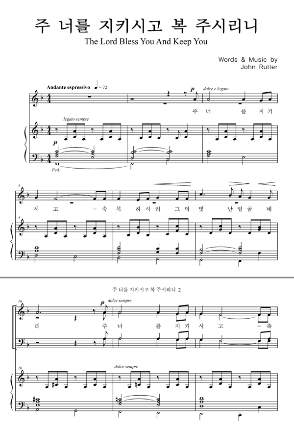 '주 너를 지키시고 복 주시리니' 의 다른 악보형식