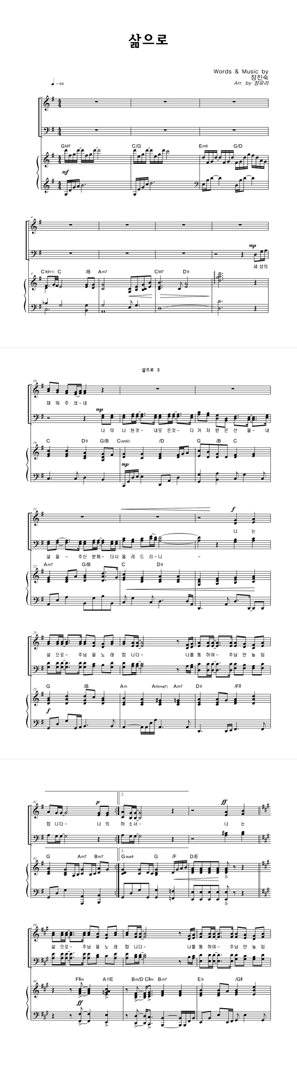 | 삶으로 | 성가 3부 + 피아노 반주 |