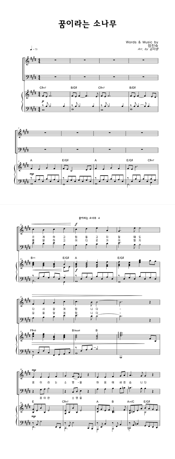 | 꿈이라는 소나무 | 성가 4부 + 피아노 반주 |