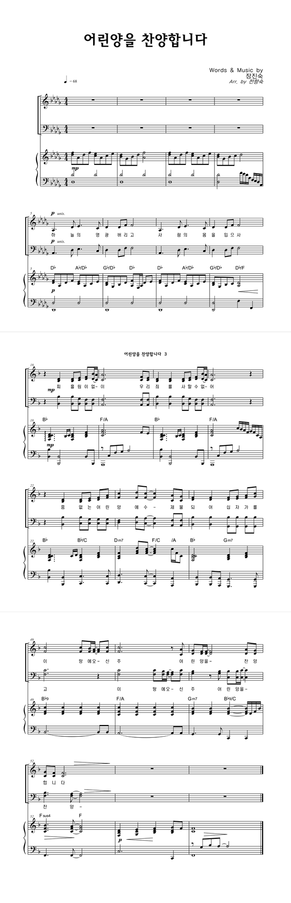 | 어린양을 찬양합니다 | 성가 3부 + 피아노 반주 |