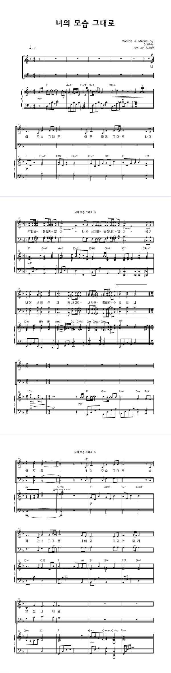 | 너의 모습 그대로 | 성가 3부 + 피아노 반주 |