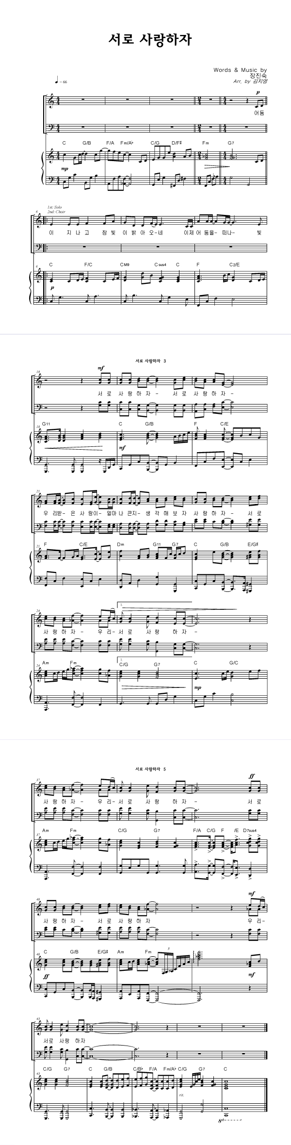 | 서로 사랑하자 | 성가 3부 + 피아노 반주 |