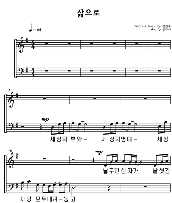 | 삶으로 | 성가 2부 + 피아노 반주 |