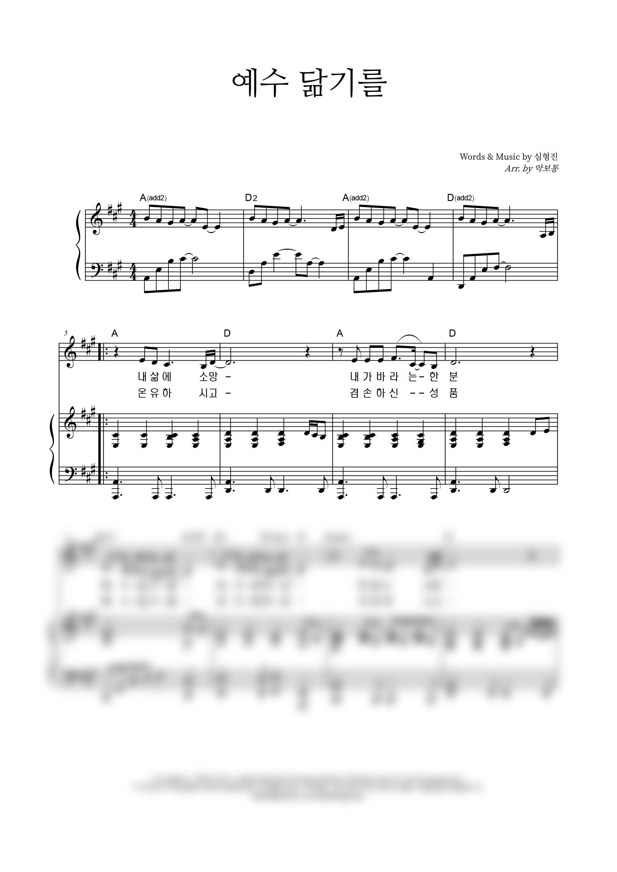 | 예수 닮기를 | 성가 4부 + 피아노 반주 |