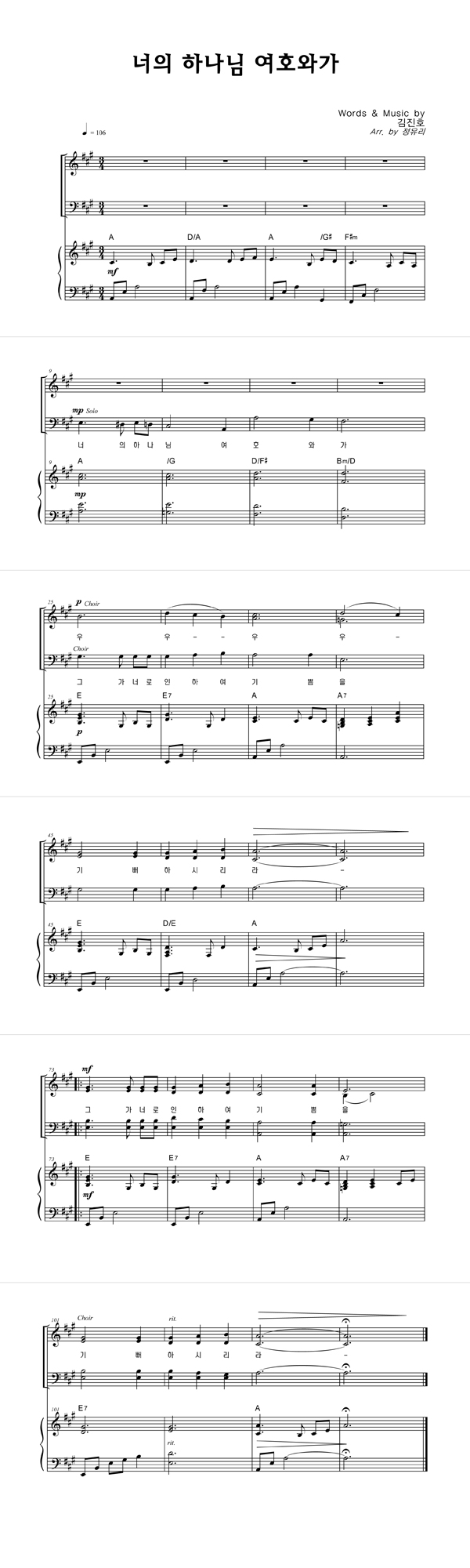 | 너의 하나님 여호와가 | 성가 3부 + 피아노 반주 |