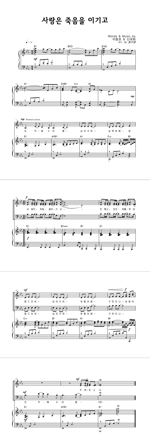 | 사랑은 죽음을 이기고 | 성가 3부 + 피아노 반주 |