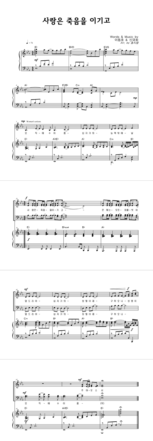 | 사랑은 죽음을 이기고 | 성가 4부 + 피아노 반주 |