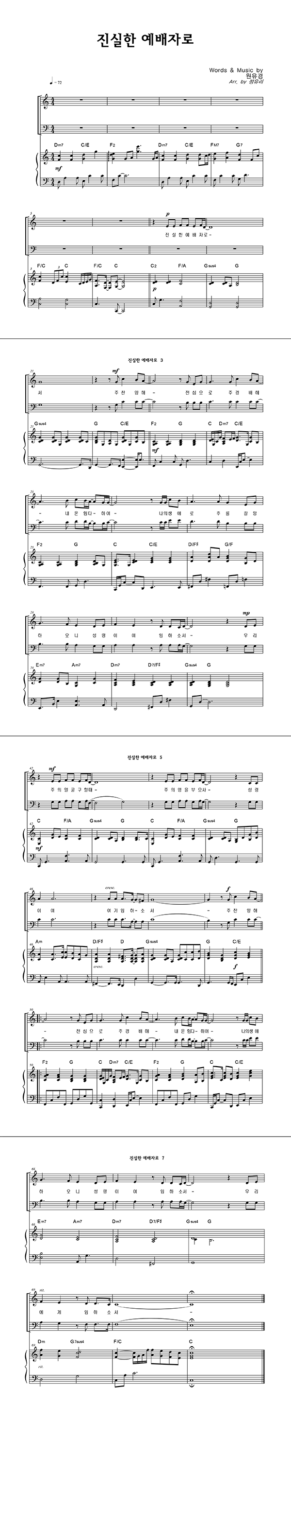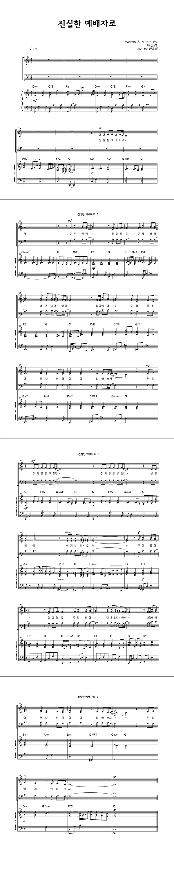 | 진실한 예배자로 | 성가 3부 + 피아노 반주 |
