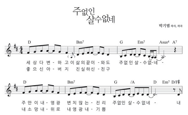 | 주 없인 살 수 없네 | 성가 4부 + 피아노 반주 |