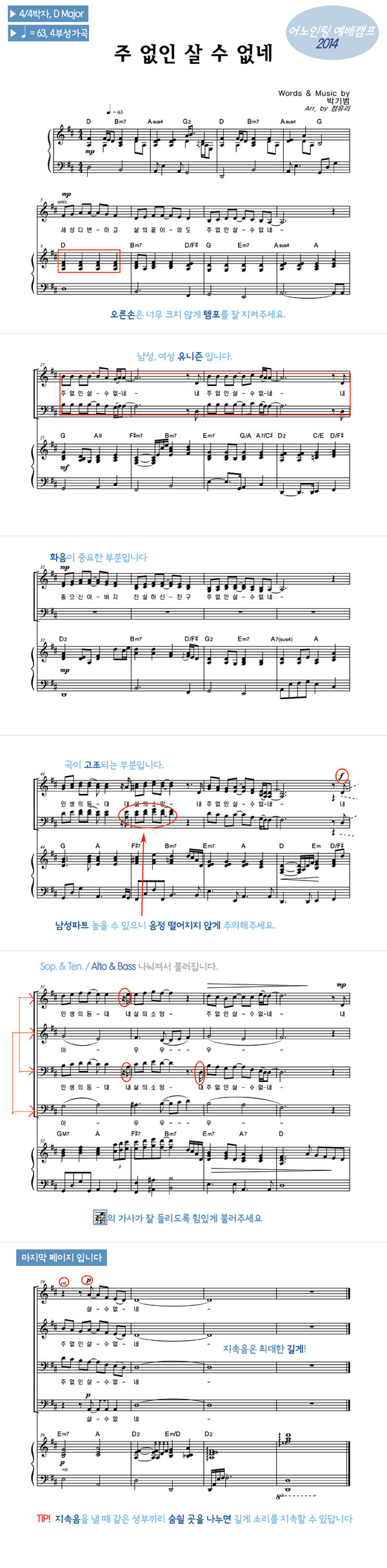 | 주 없인 살 수 없네 | 성가 3부 + 피아노 반주 |
