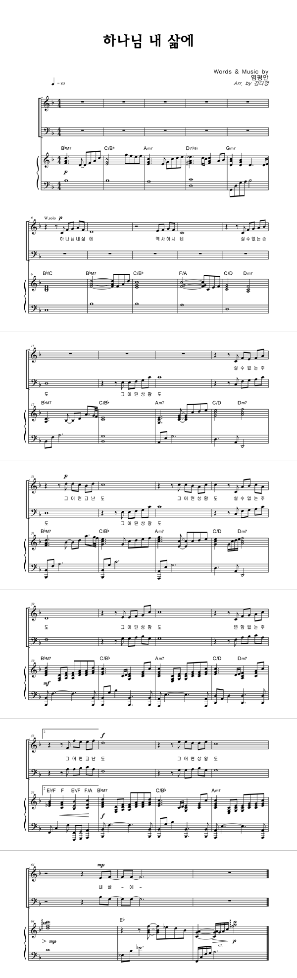 | 하나님 내 삶에 | 성가 3부 + 피아노 반주 |