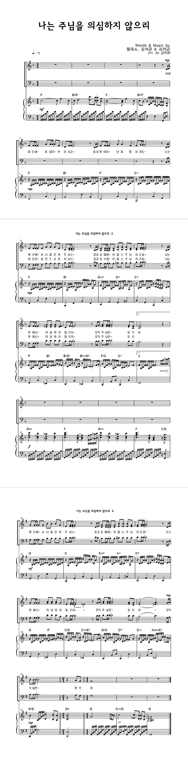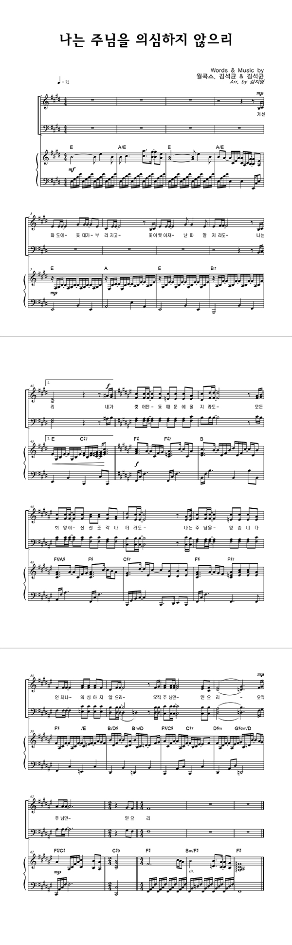 | 나는 주님을 의심하지 않으리 | 성가 4부 + 피아노 반주 |