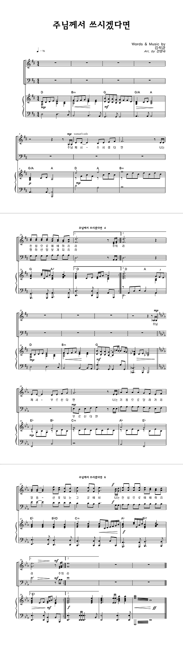 | 주님께서 쓰시겠다면 | 성가 4부 + 피아노 반주 |
