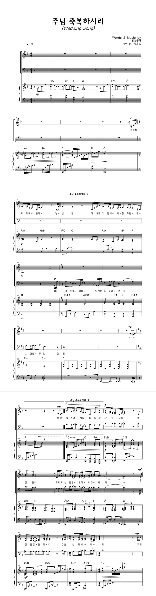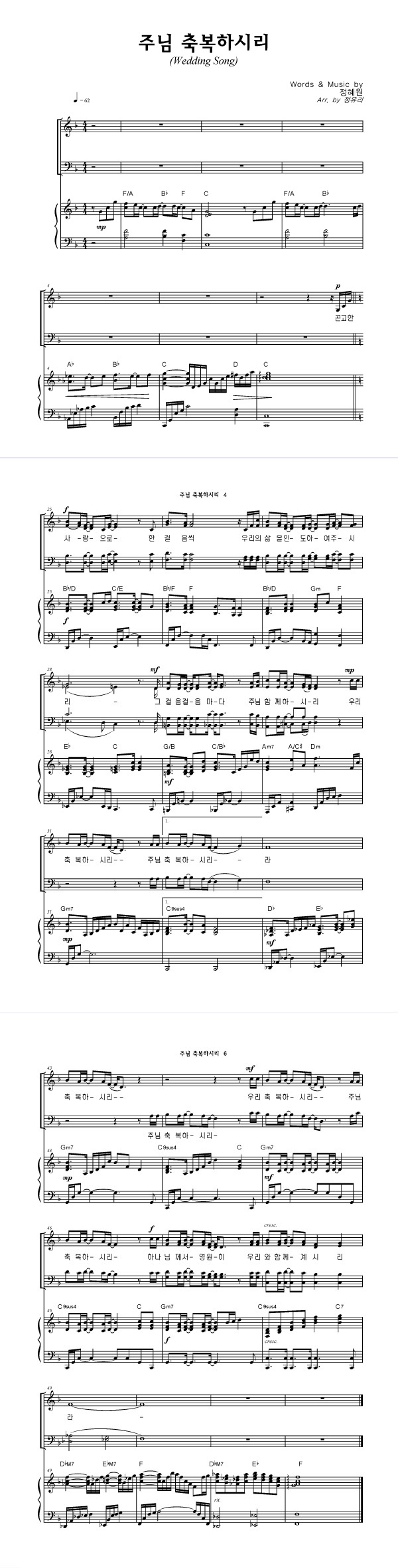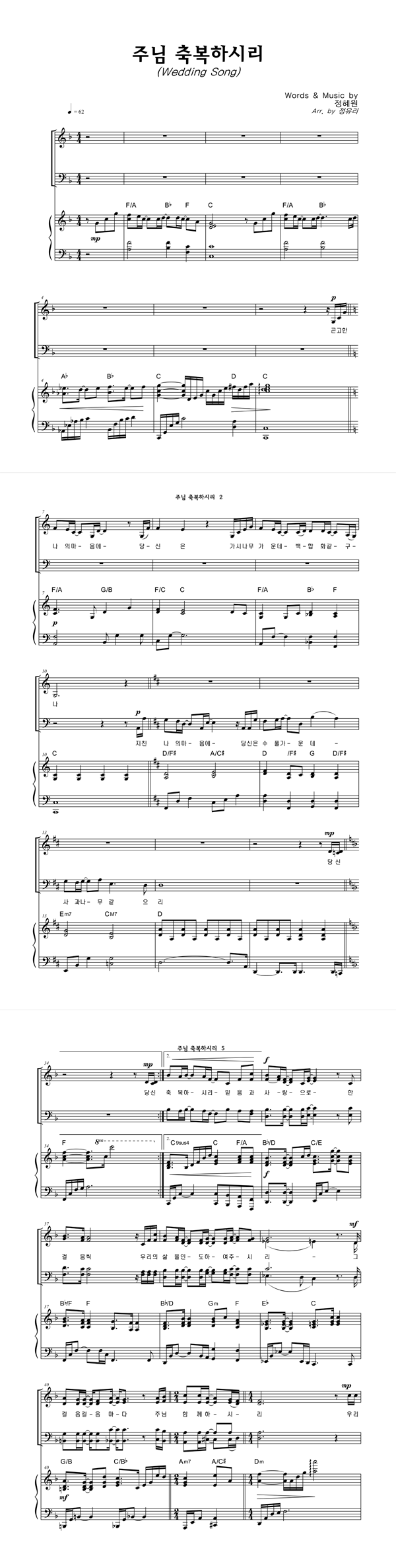 | 주님 축복하시리 | 성가 2부 + 피아노 반주 |