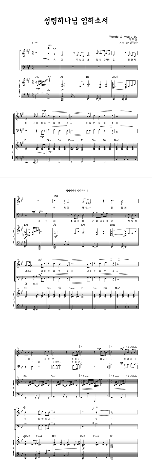 | 성령하나님 임하소서 | 성가 3부 + 피아노 반주 |