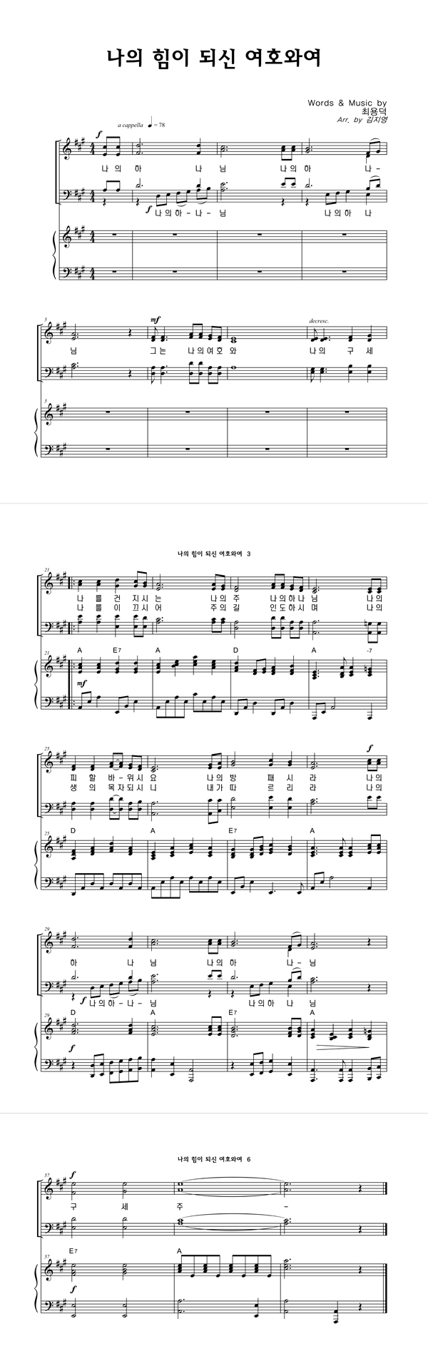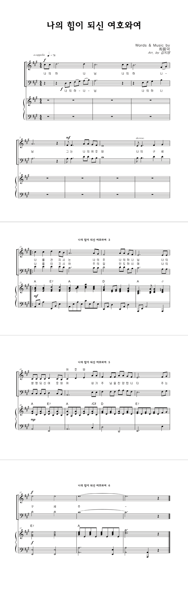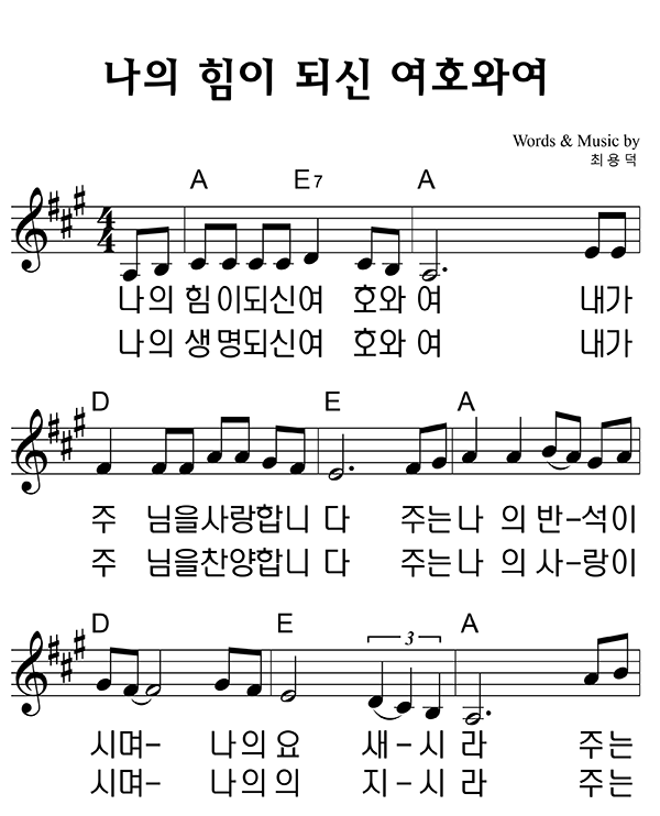 | 나의 힘이 되신 여호와여 | 성가 3부 + 피아노 반주 |