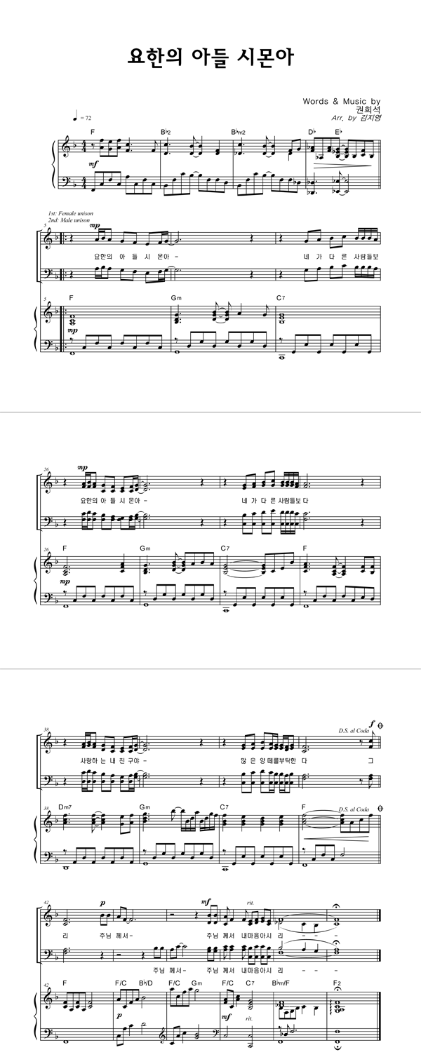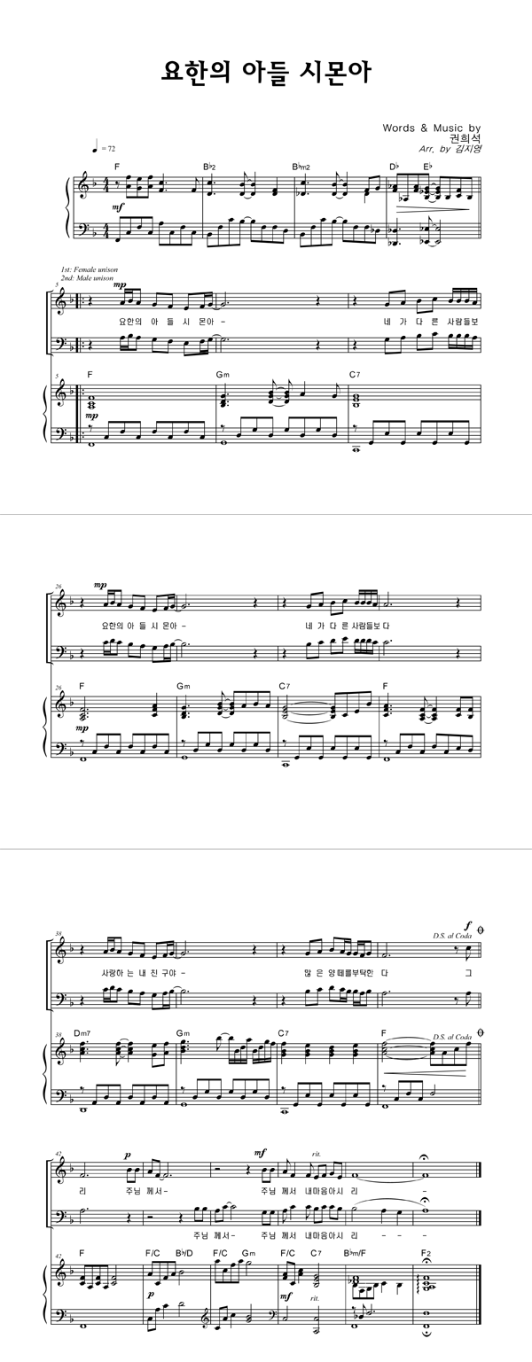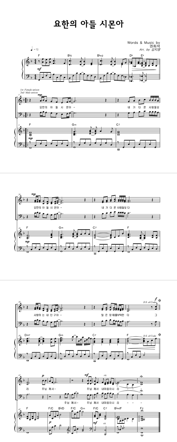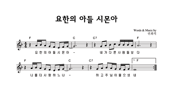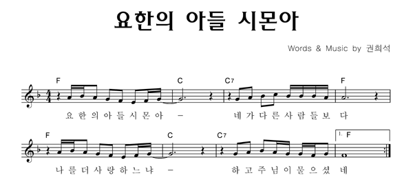 | 요한의 아들 시몬아 | 성가 2부 + 피아노 반주 |