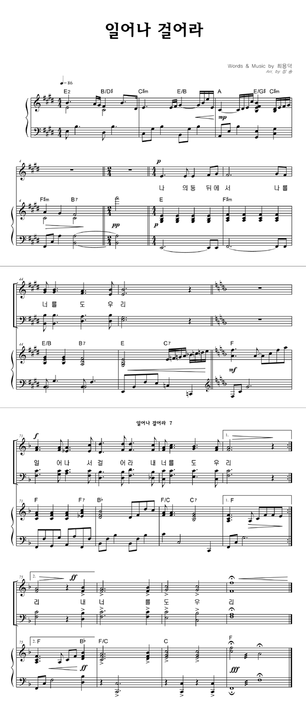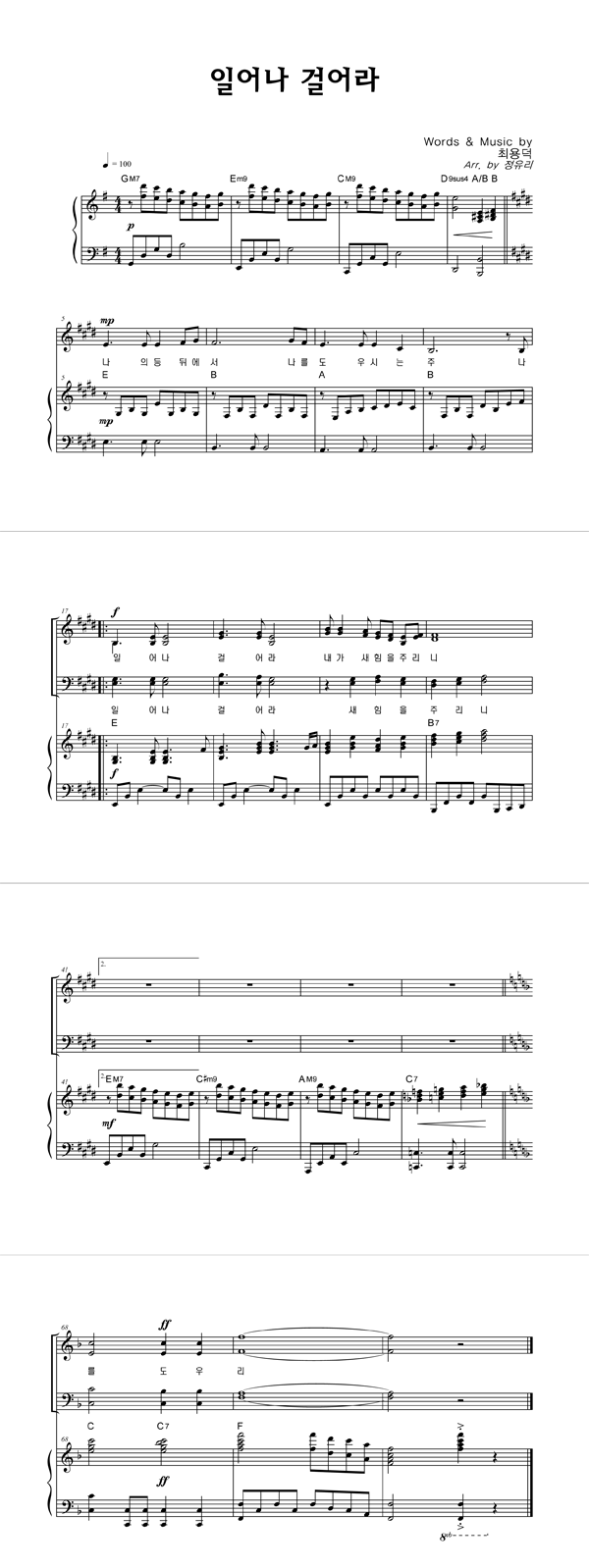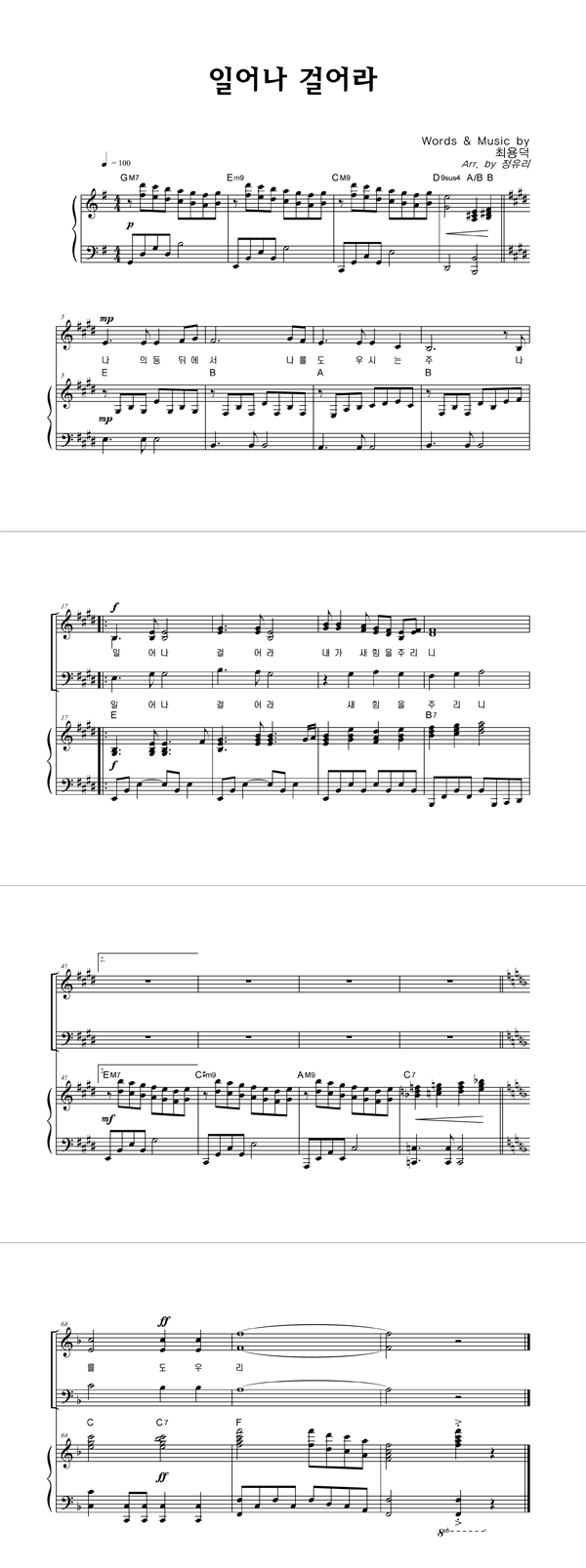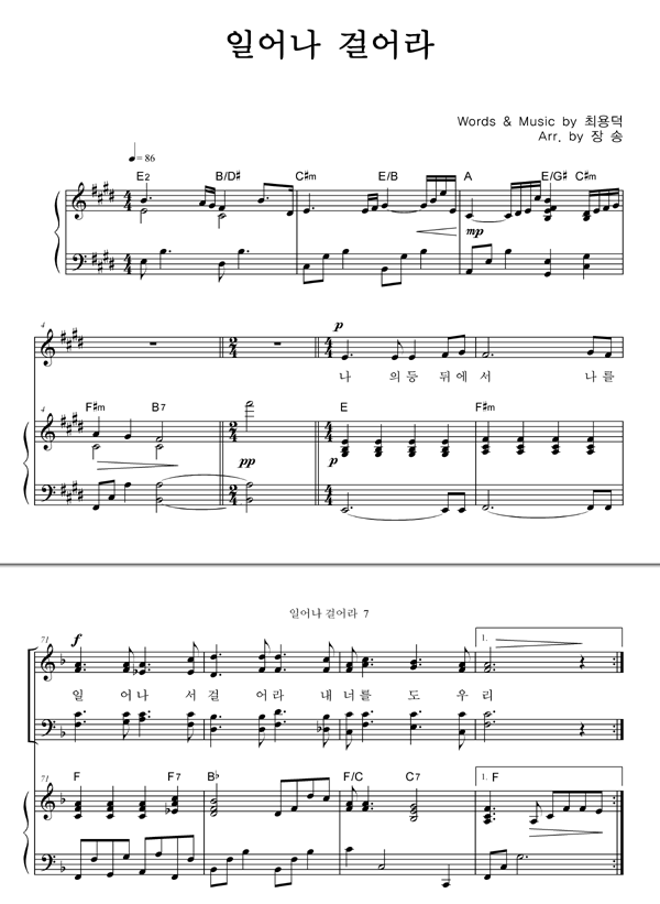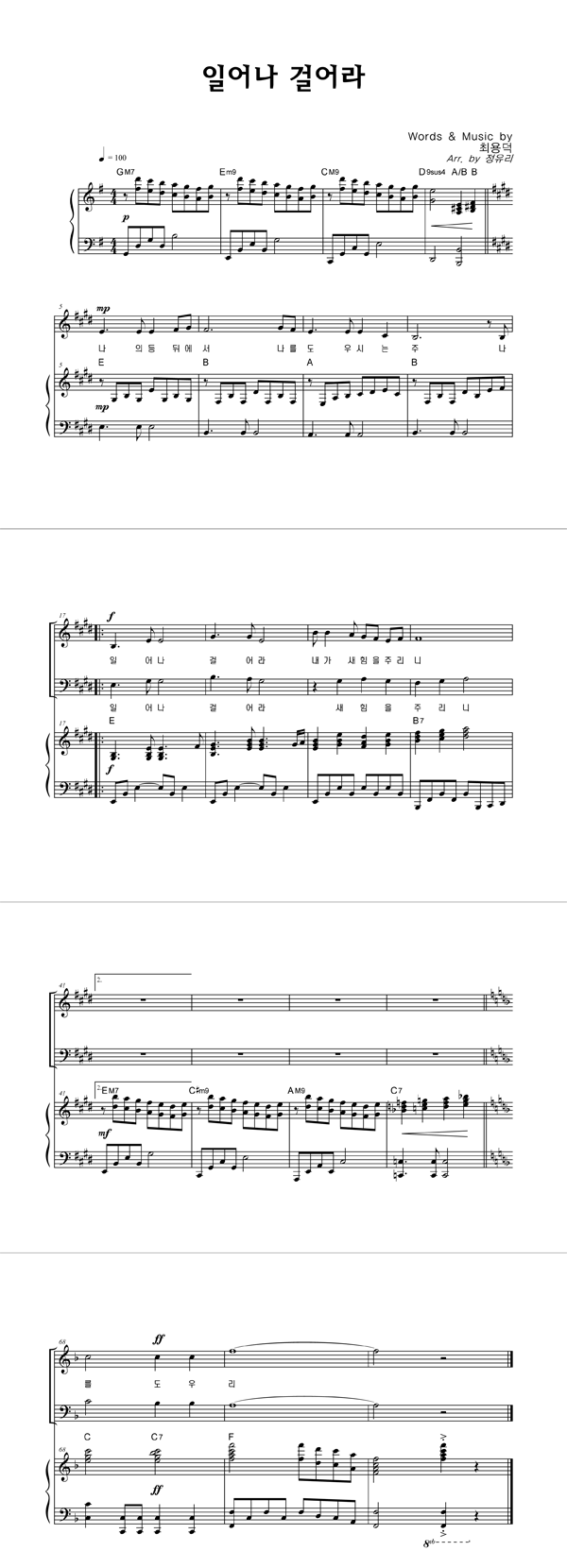 | 일어나 걸어라 | 성가 2부 + 피아노 반주 |
