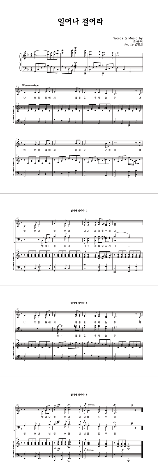 | 일어나 걸어라 | 성가 4부 + 피아노 반주 |