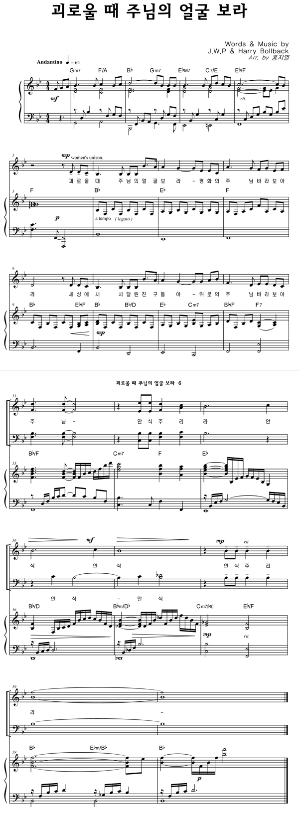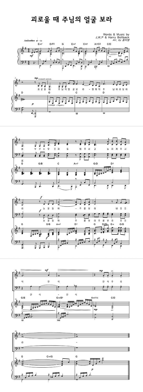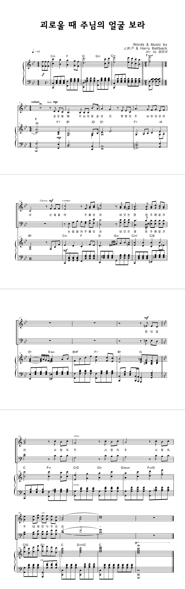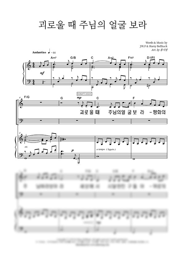 | 괴로울 때 주님의 얼굴 보라 | 성가 4부 + 피아노 반주 |