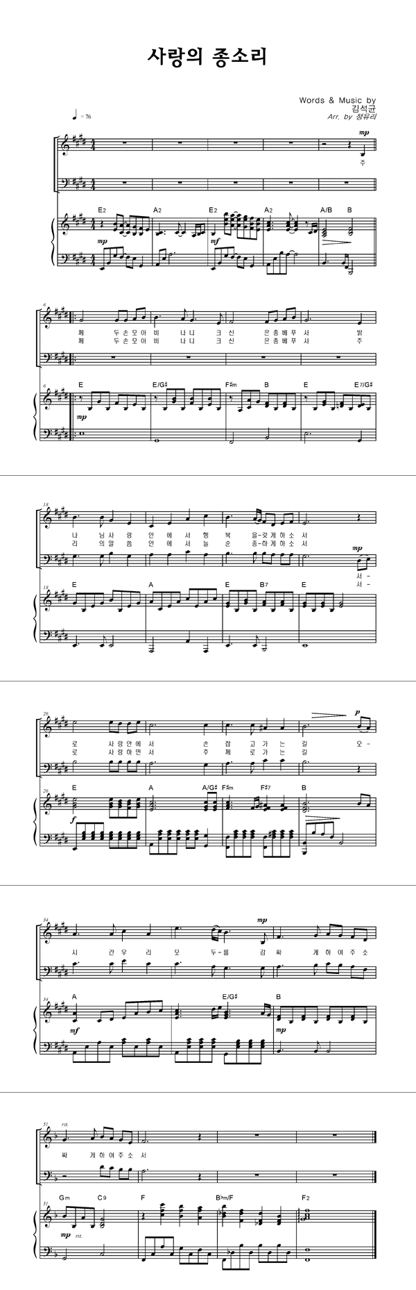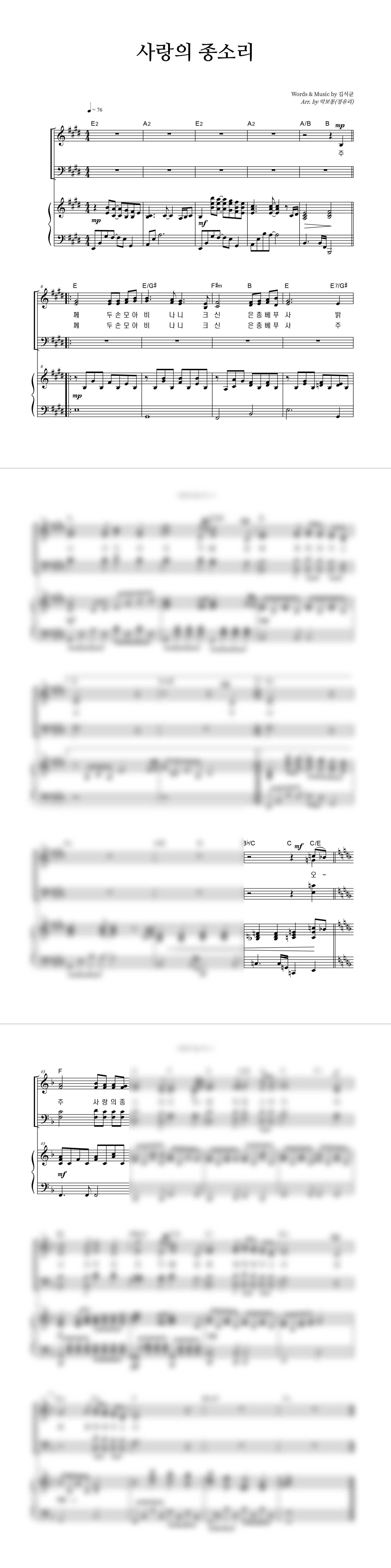 | 사랑의 종소리 | 성가 3부 + 피아노 반주 |