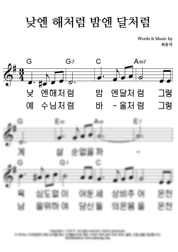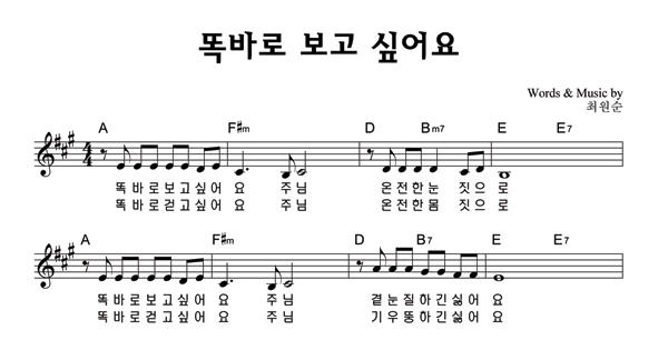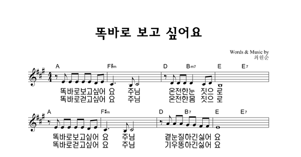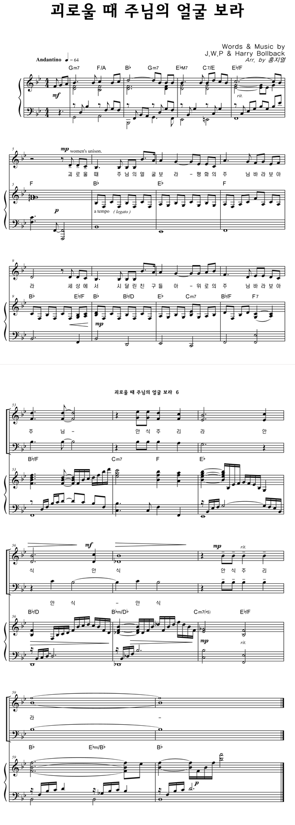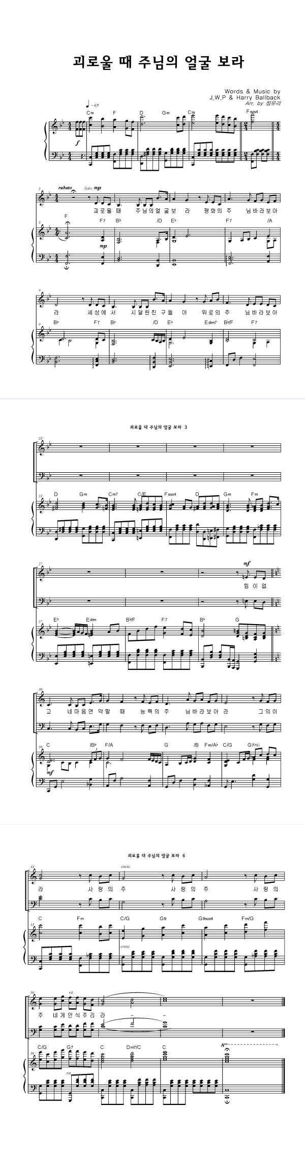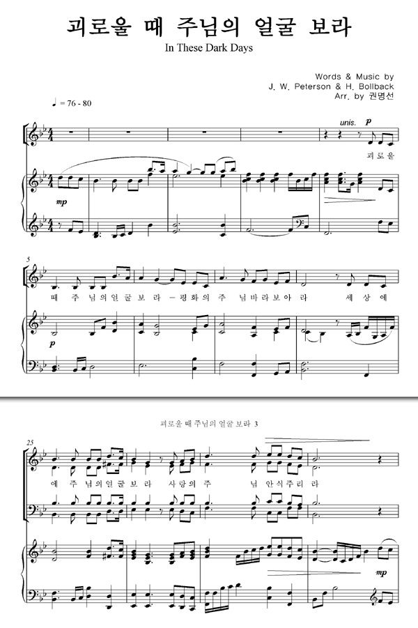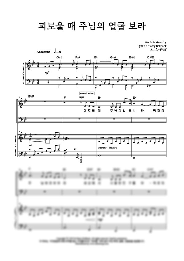 | 괴로울 때 주님의 얼굴 보라 | 성가 3부 + 피아노 반주 |