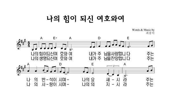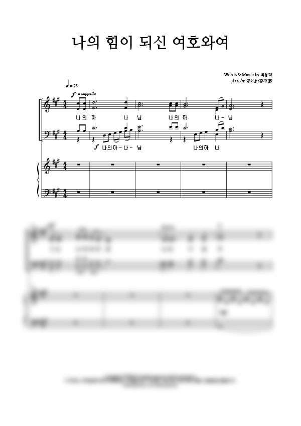 | 나의 힘이 되신 여호와여 | 성가 4부 + 피아노 반주 |
