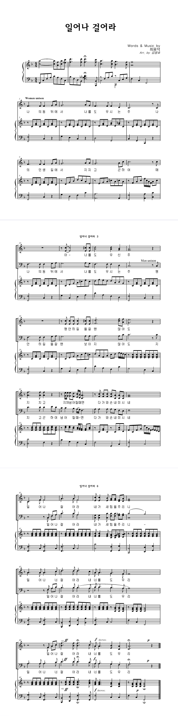 | 일어나 걸어라 | 성가 3부 + 피아노 반주 |